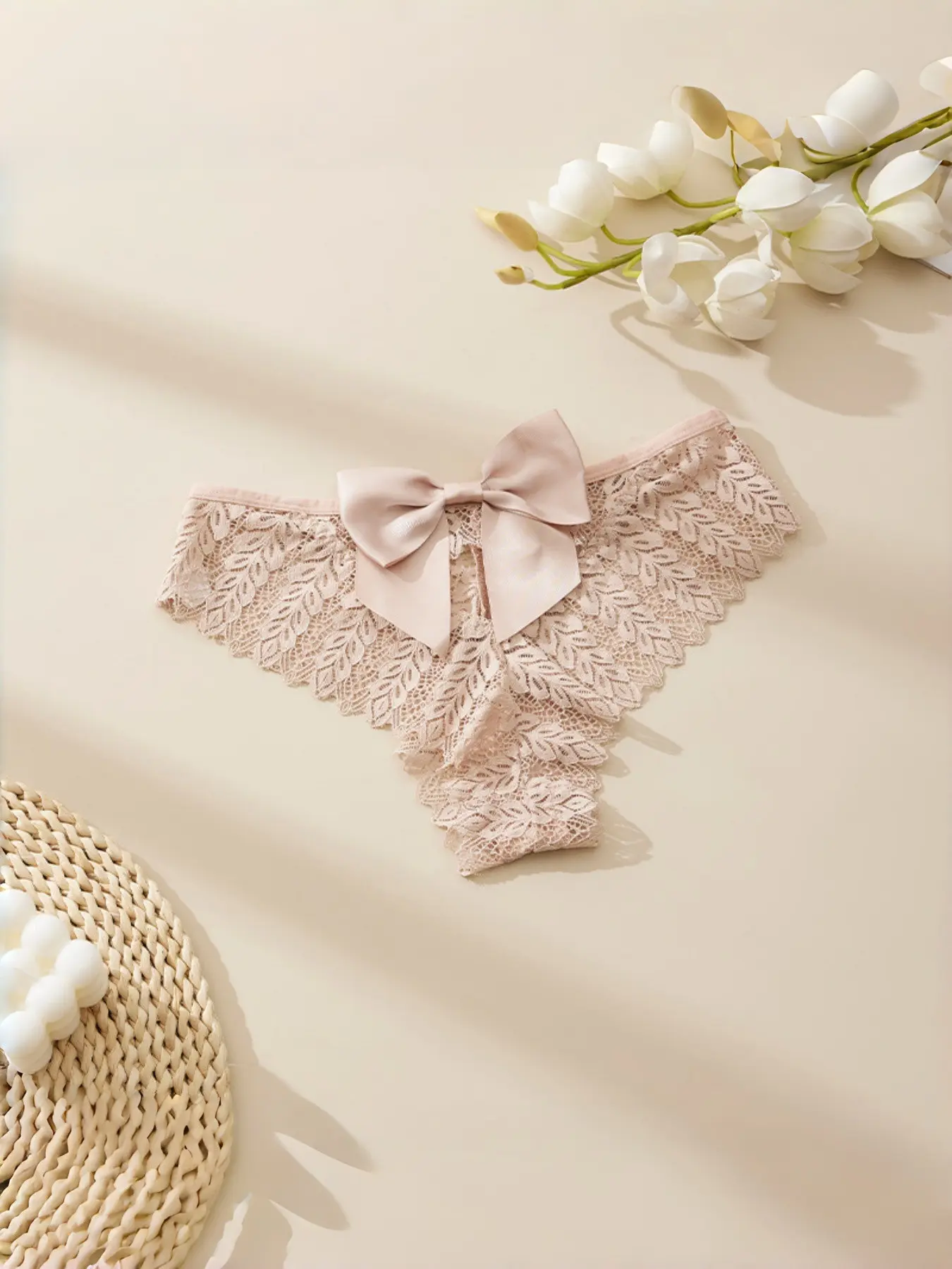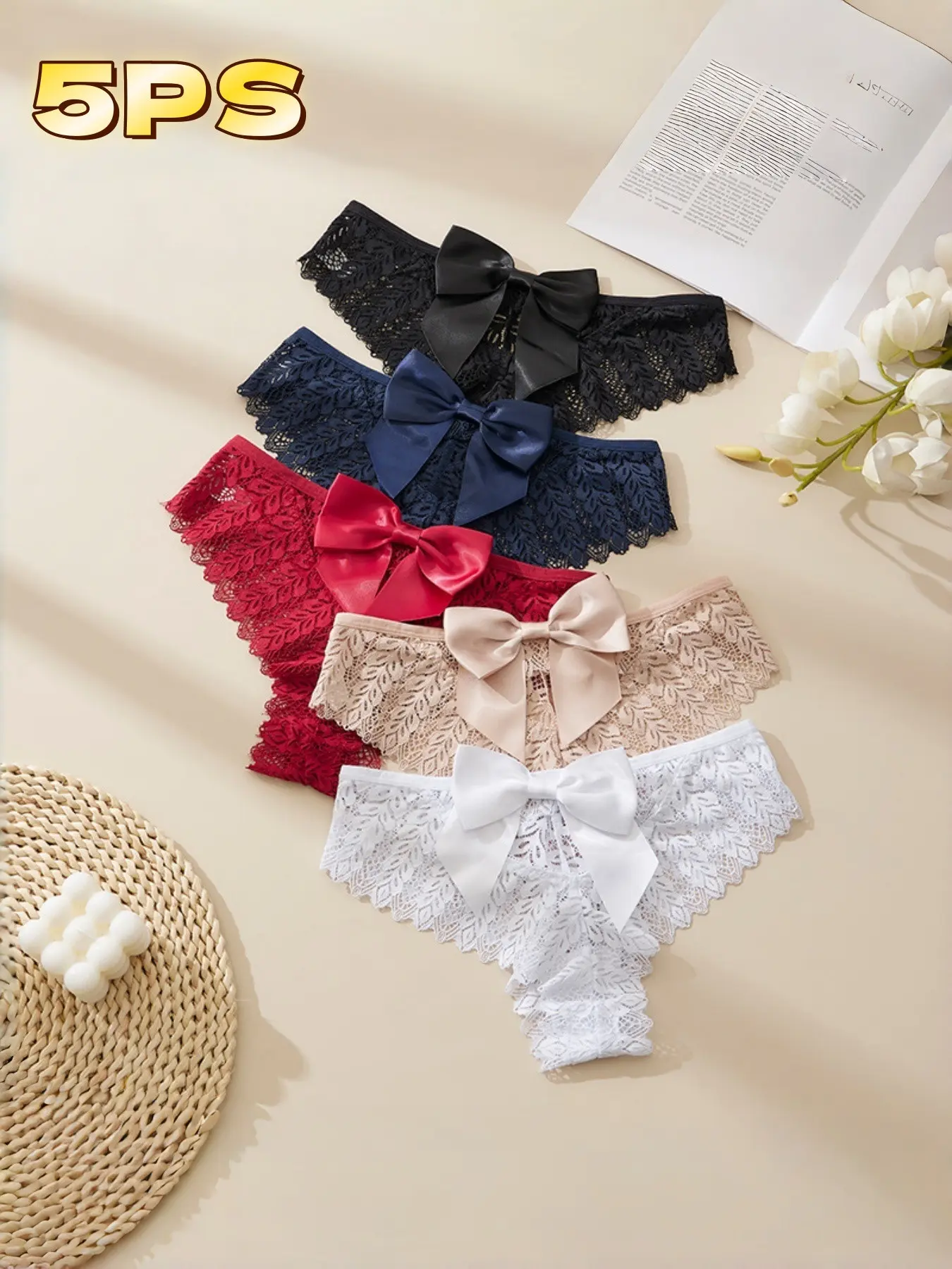 5. 5-Pack Women's Underwear, Sexy Bow Design, Peach Butt Soft Lace Breathable Mesh, Comfortable Mid-Waist Triangle Panties, Valentine's Day Gift