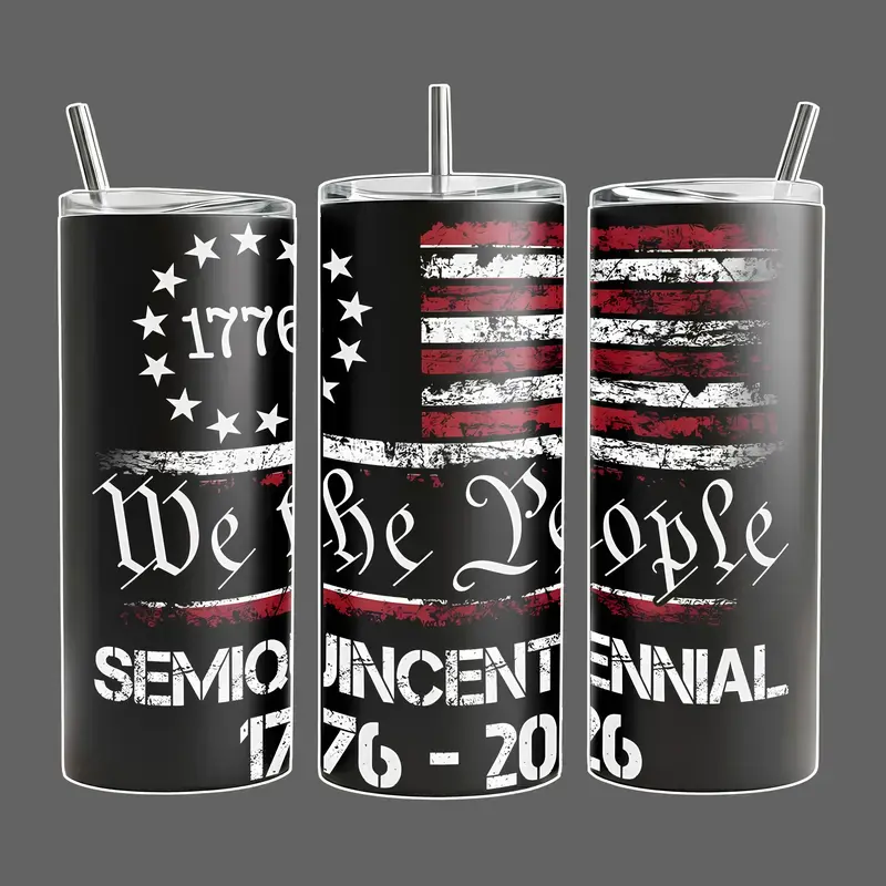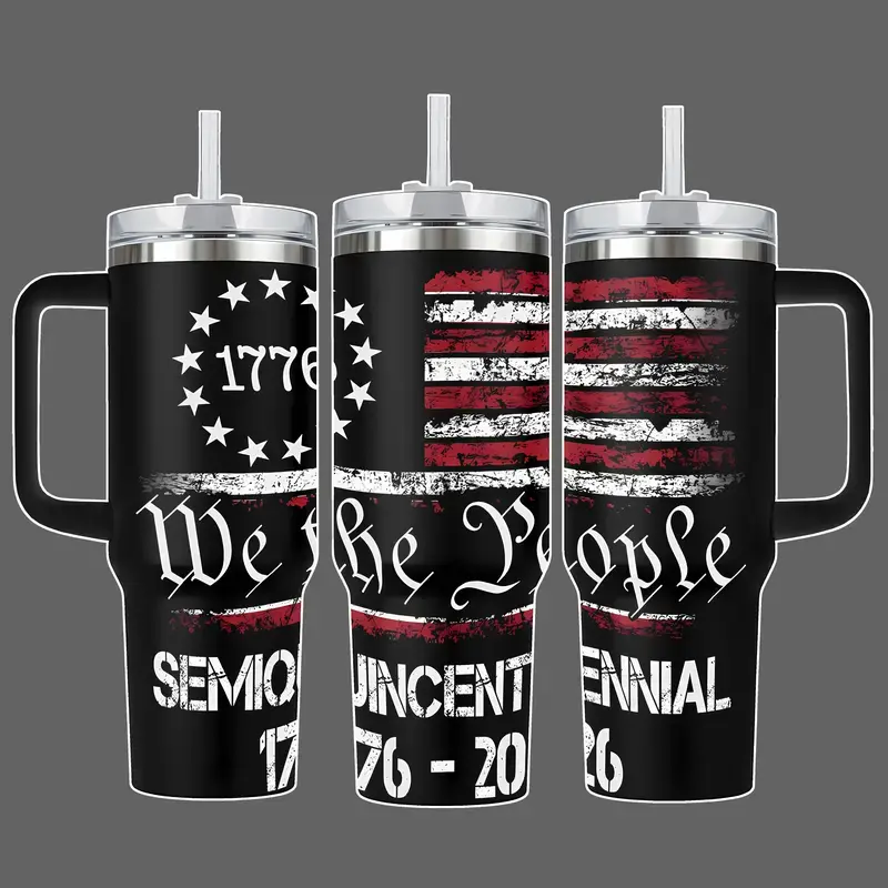 1776–2026 We The People 250th Anniversary American Flag Stainless Steel Insulated Travel Tumbler With Handle 20oz 40oz Patriotic USA Wrap Design