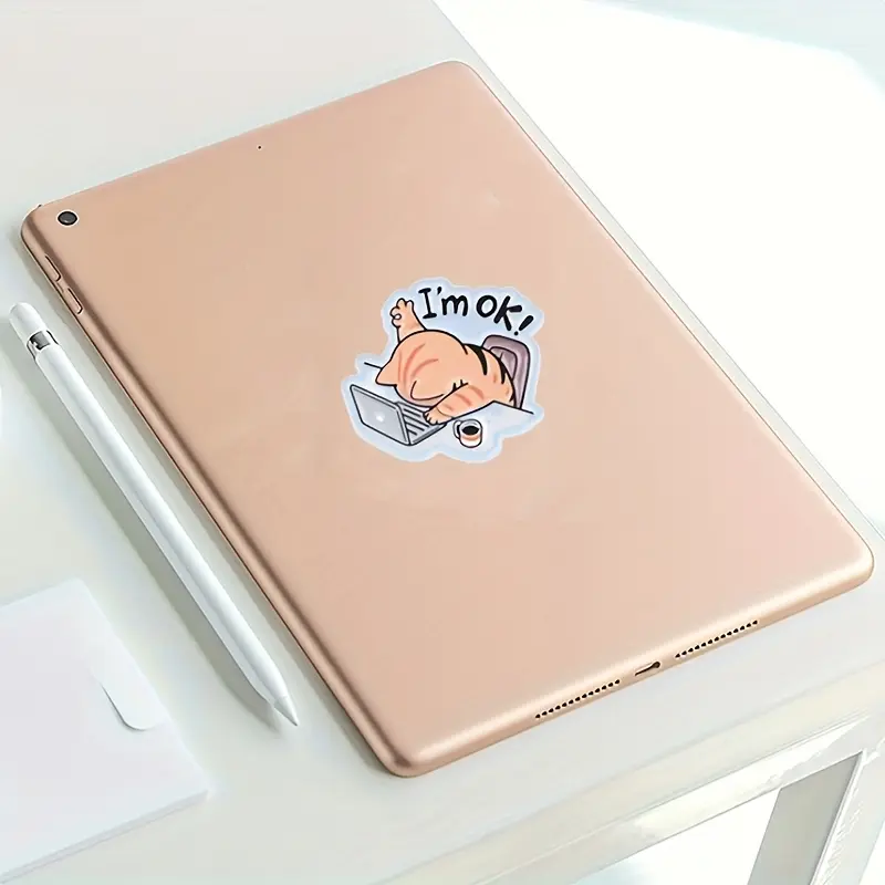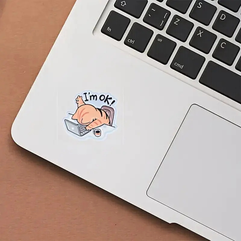 A "I'M Fine" Cat Sticker - Glossy Hollow Design, Suitable for Laptops, Water Bottles, And Phones - Durable Accessory And Gift, Notebook Decoration