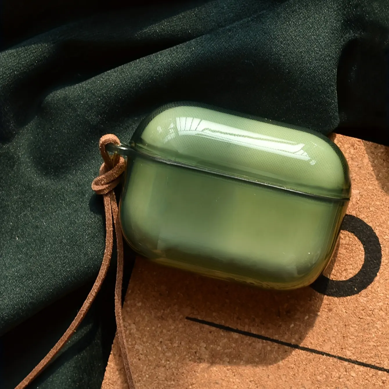 1pc Morandi Color Solid Translucent Green Dark Green Minimalist Full-Cover Anti-Drop Leather Strap Case