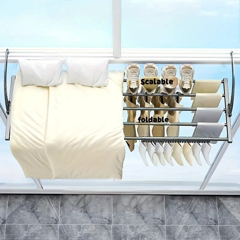 1pcs Adjustable Outdoor Clothes Drying Rack, Space Saving Balcony Garden Hook, Drying Rack, Hanging Hanging Rack, Large Size Drying Rack Retractable, Foldable Drying Rack for Railing, Door & Windows, Balcony, Indoor, Outdoor Adjustable, Plastic Material