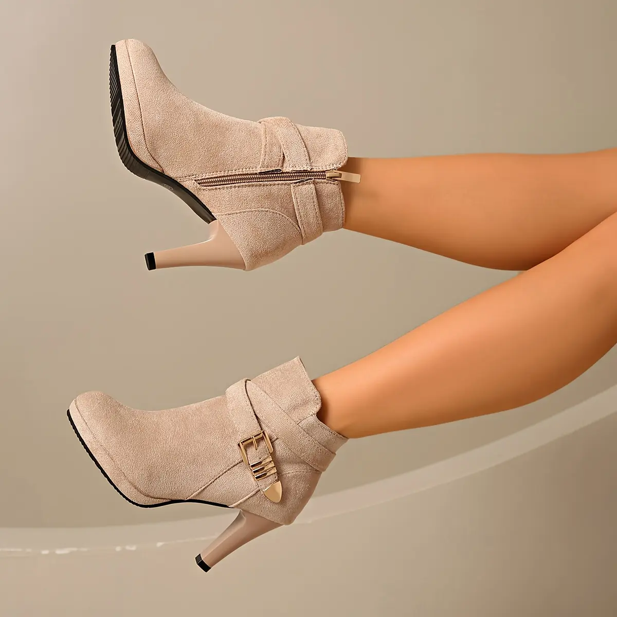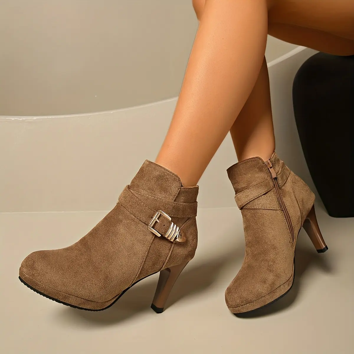 5. A Pair of Women's High Quality Platform Chunky Heel Side Zipper High-Heeled Ankle Booties, Women Shoes
