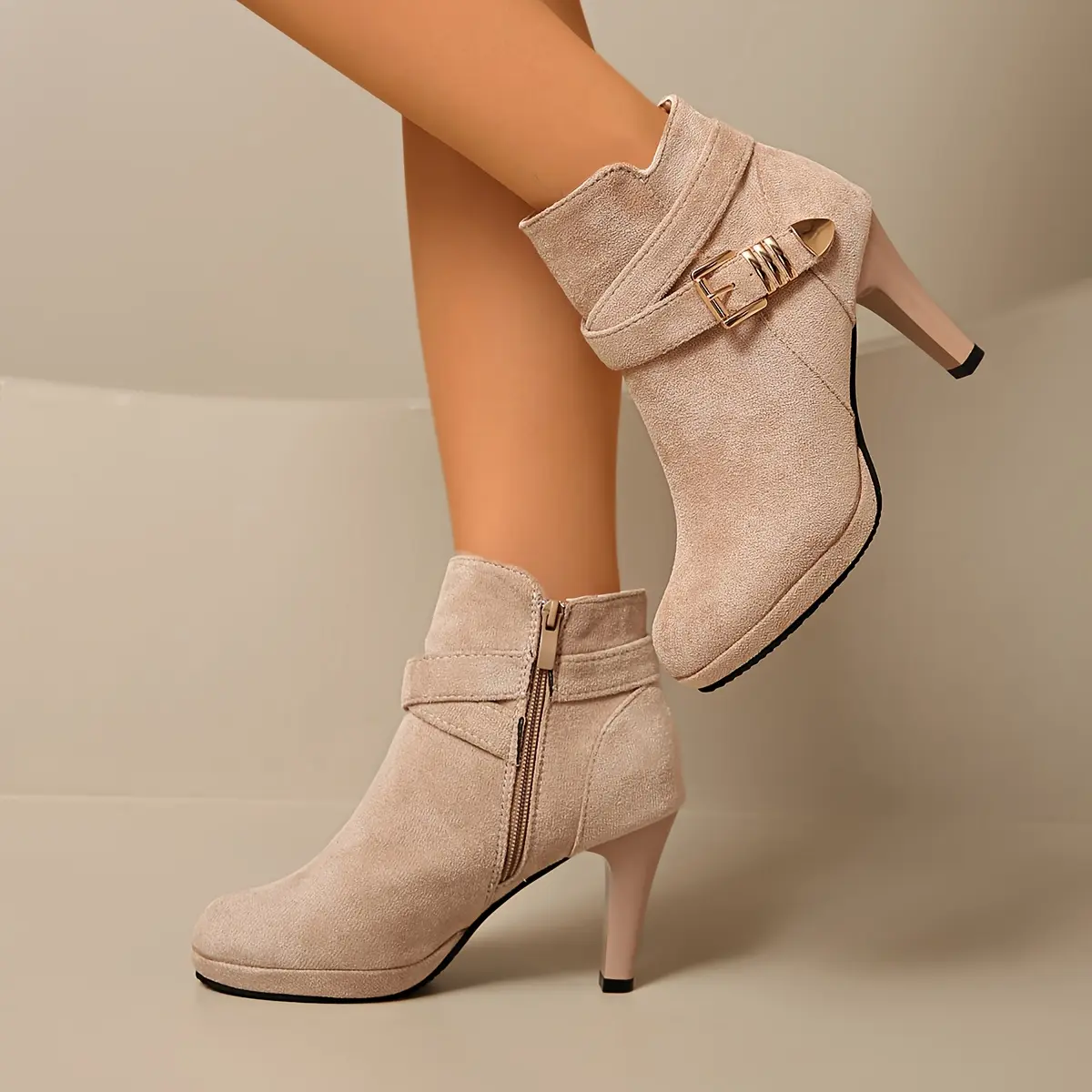 A Pair of Women's High Quality Platform Chunky Heel Side Zipper High-Heeled Ankle Booties, Women Shoes
