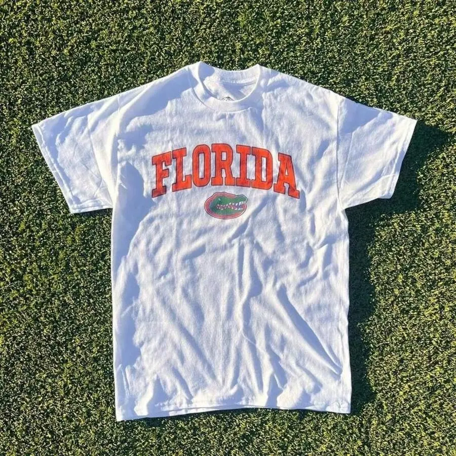 Summer New Short Sleeve Pattern Top ,Vintage Florida State Gators Shirt White New White All Sizes, Shirt Hot New Comfortable Retro Cotton T-Shirt-L91