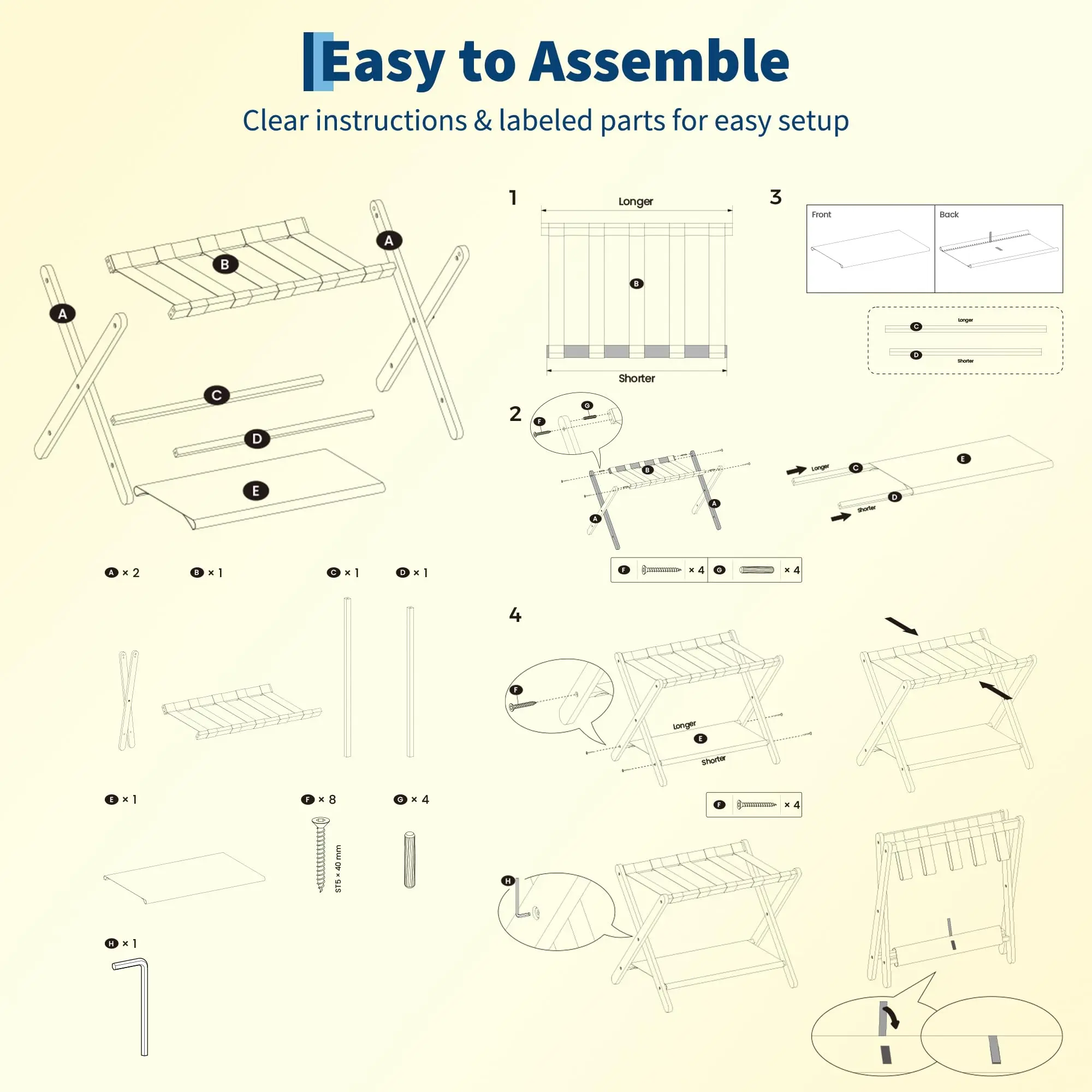 · Effortlessly pack and unpack with a luggage rack that elevates your suitcase, fits most 22", 24", and 26" bags, and keeps your bedroom or guest room tidy.