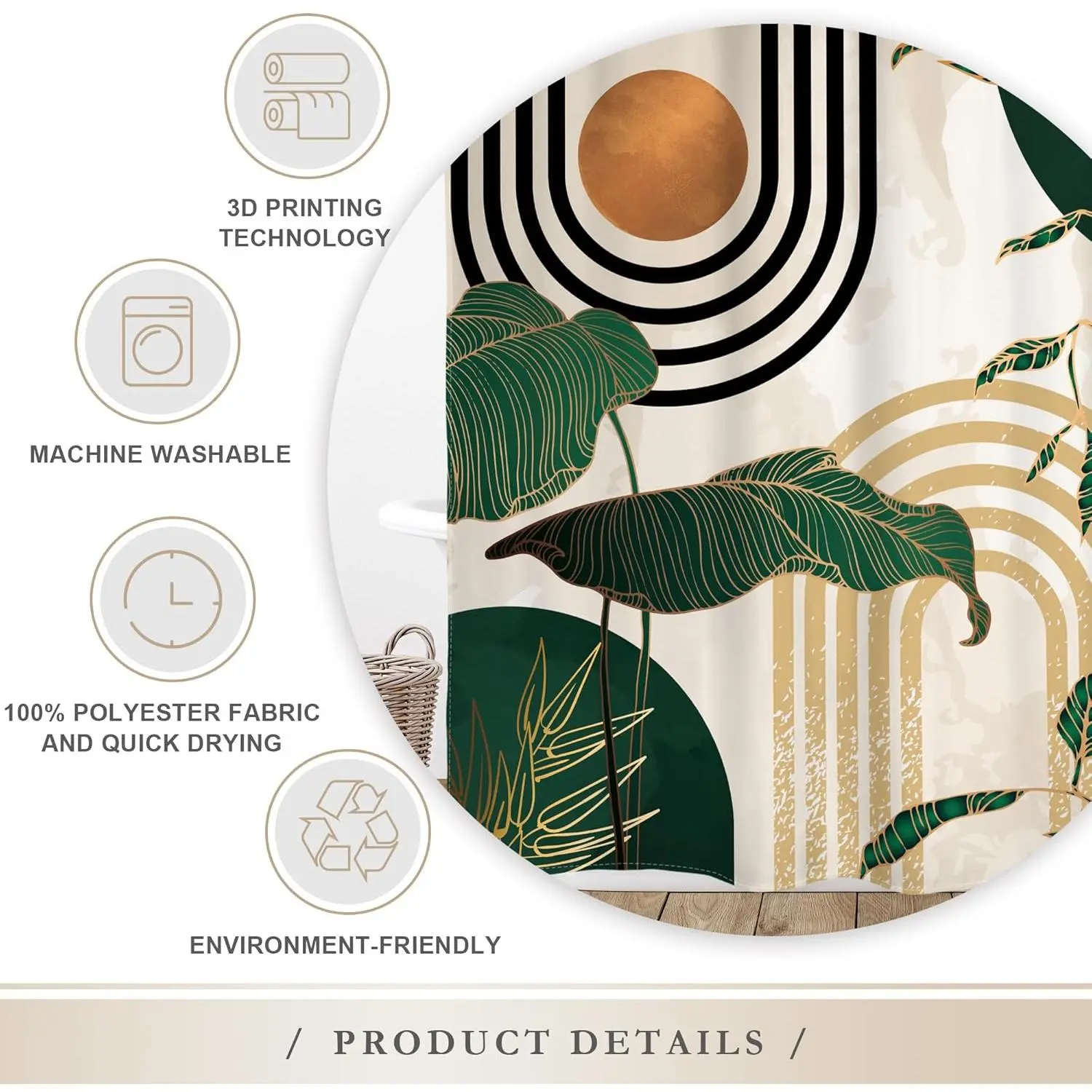 Crafted with utmost attention to detail, the Boho Green Leaf Shower Curtain features a unique design pattern that captivates with its charm.The abstract green tropical leaf motifs bring a touch of nature into your space, instantly transforming your bathroom into a tranquil oasis.