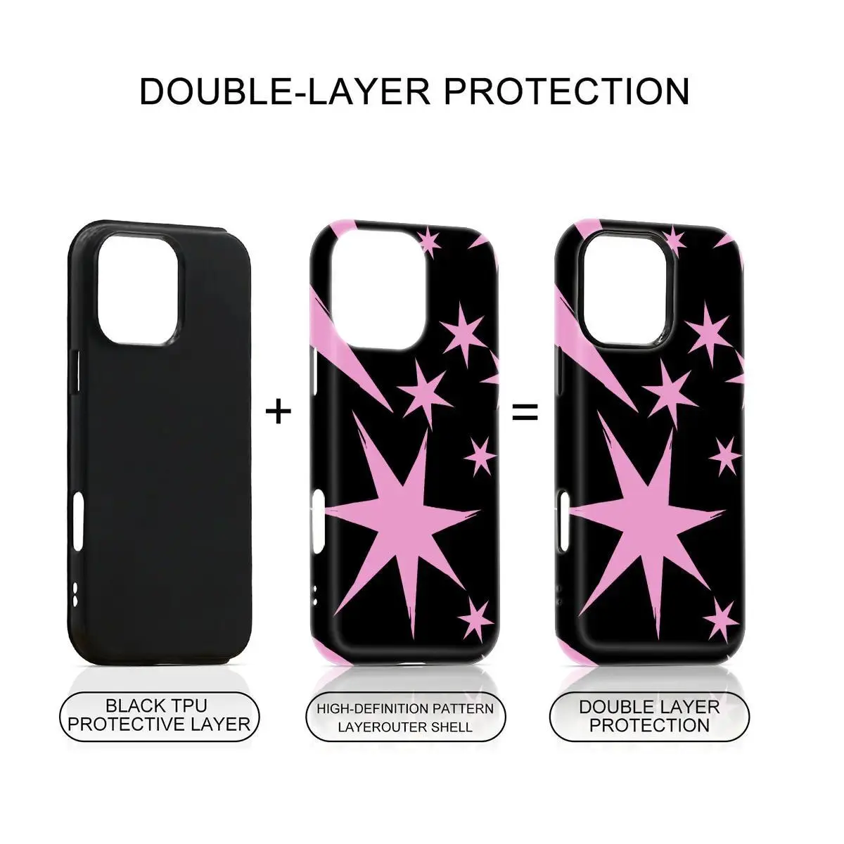 Black Pink Star Design Phone Cover 2 in 1 Case,phone Case Suitable for Iphone 11/12/13/14/15/16/17 Pro Promax Plus Air and Samsung S22/S23/S24/S25 Plus Ultra Fe,Trendy Phone Case