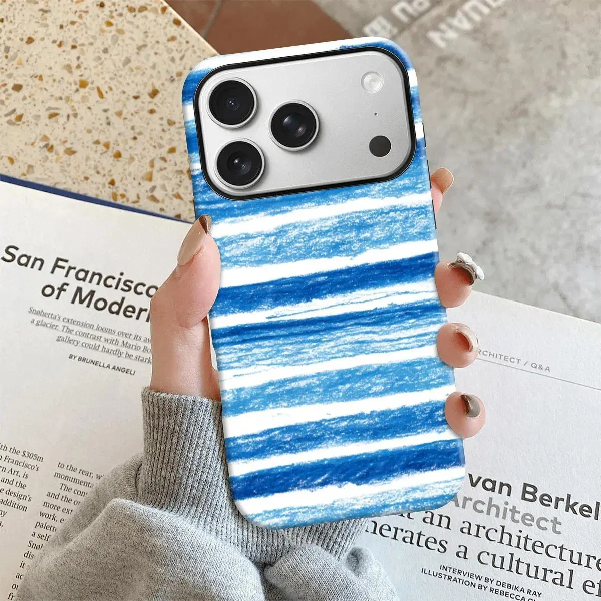 Hand-Drawn Blue Sea Texture Design Mobile Phone Case Full Body Protection,phone Case Suitable for Iphone 11/12/13/14/15/16/17 Pro Promax Plus Air and Samsung S22/S23/S24/S25 Plus Ultra Fe,Unique Phone Case
