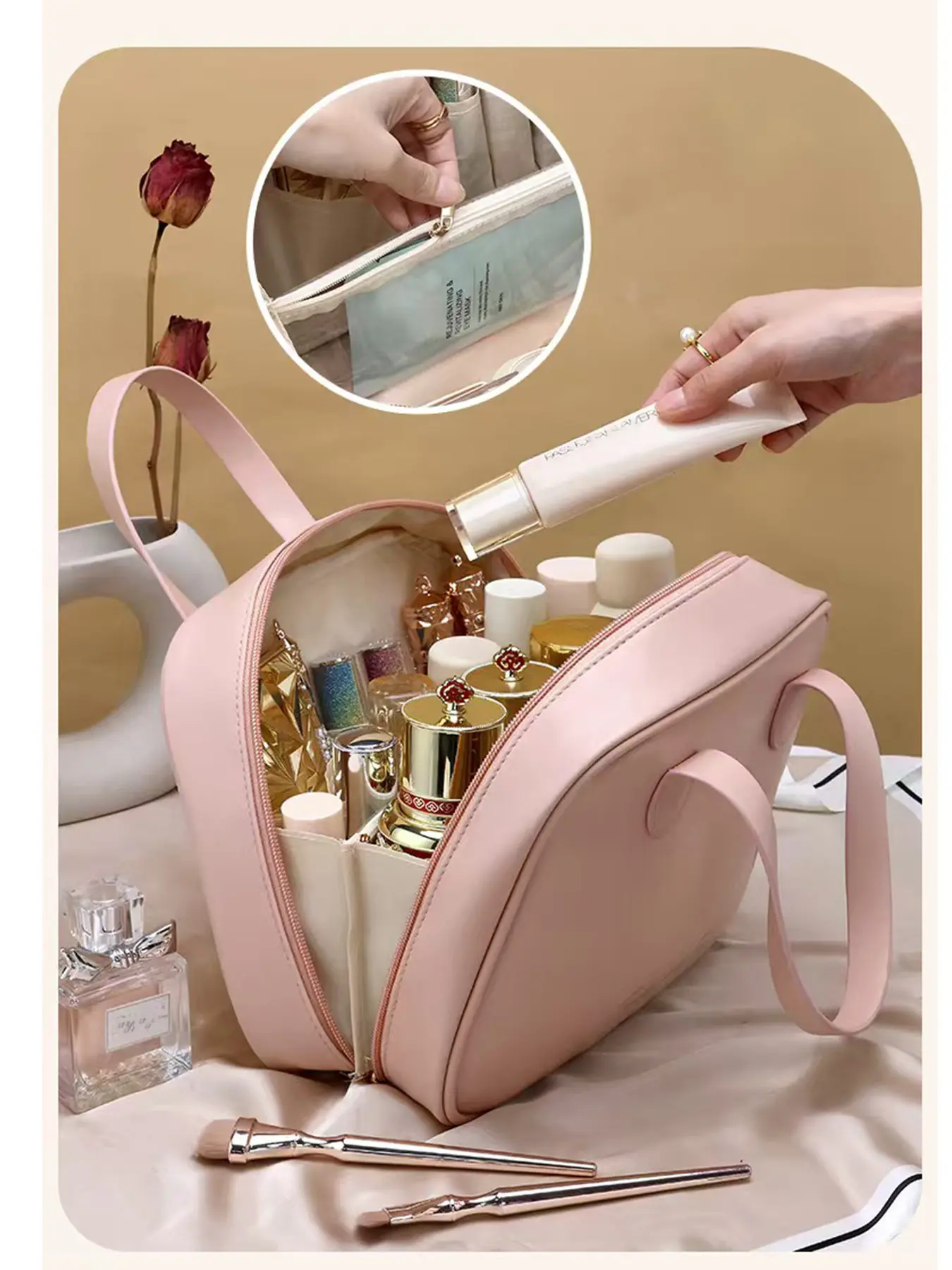 High-End PU Makeup Bag, Large Capacity Travel Cosmetic Organizer, Multi-Functional Bathroom Storage, Portable Partitioned Washbag