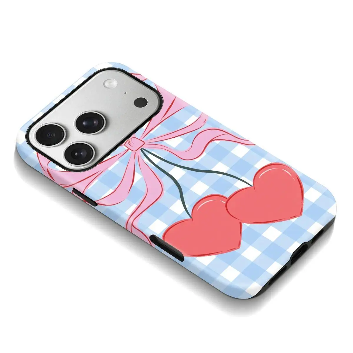 Blue Gingham Bow Design Fashion Phone Case Full Body Protection,phone Case Suitable for Iphone 11/12/13/14/15/16/17 Pro Promax Plus Air and Samsung S22/S23/S24/S25 Plus Ultra Fe,Unique Phone Case