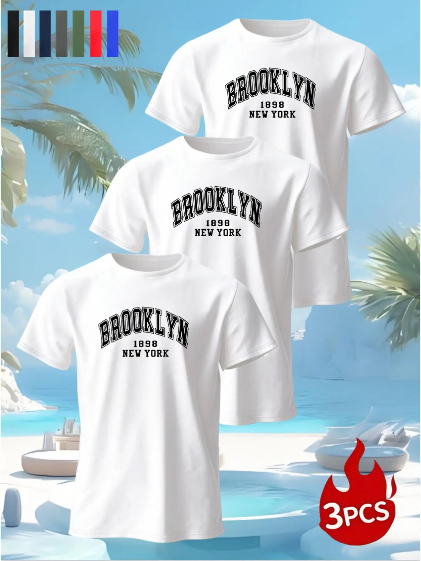 Men's Summer Short Sleeve T-Shirt, Comfortable Breathable Round Neck, New York Print, Casual Sporty Style, Multi-Color Options