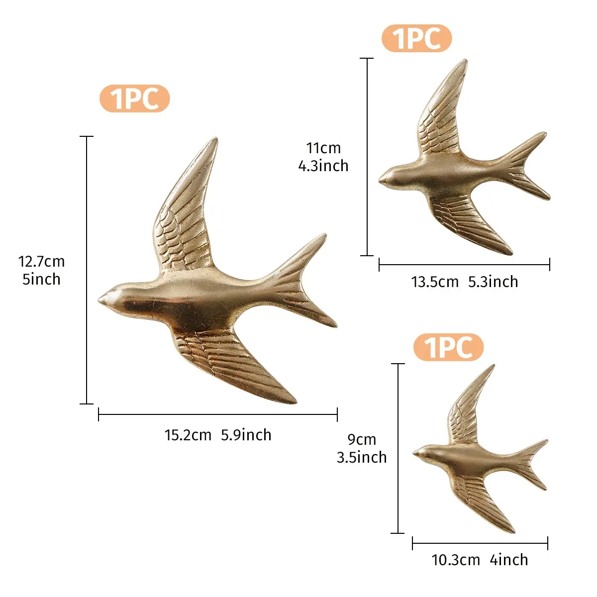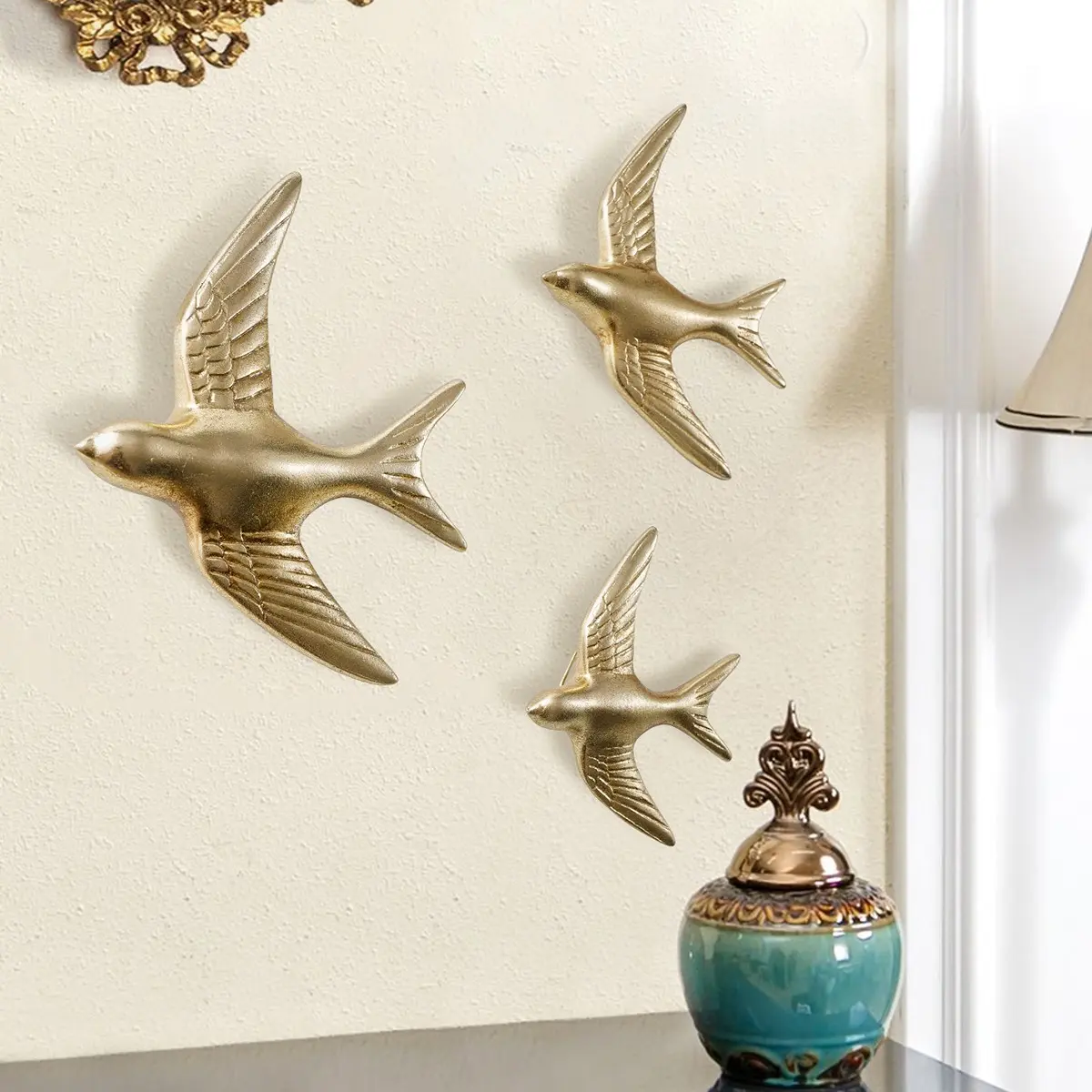 3pcs European Style Flying Bird Wall Decor, Resin Material Home Hotel Decoration, Bathroom Hanging Ornament
