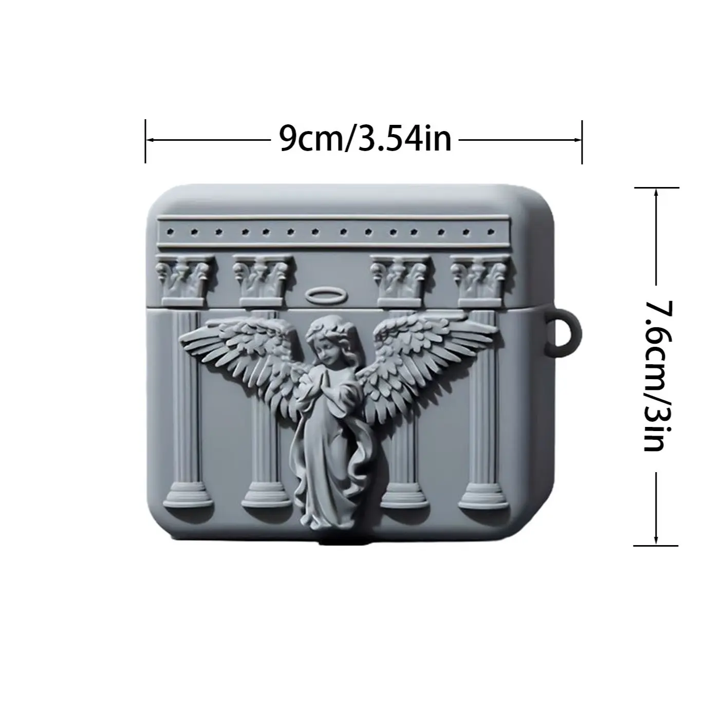 3D Angel Earphone Case, Vintage Roman Column Silicone Protector, Compatible with AirPods 1/2/3/4/pro, Unique Artistic Design