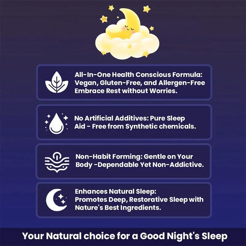 L-Theanine: Induces relaxation without drowsiness, aiding in a stress-free sleep experience.