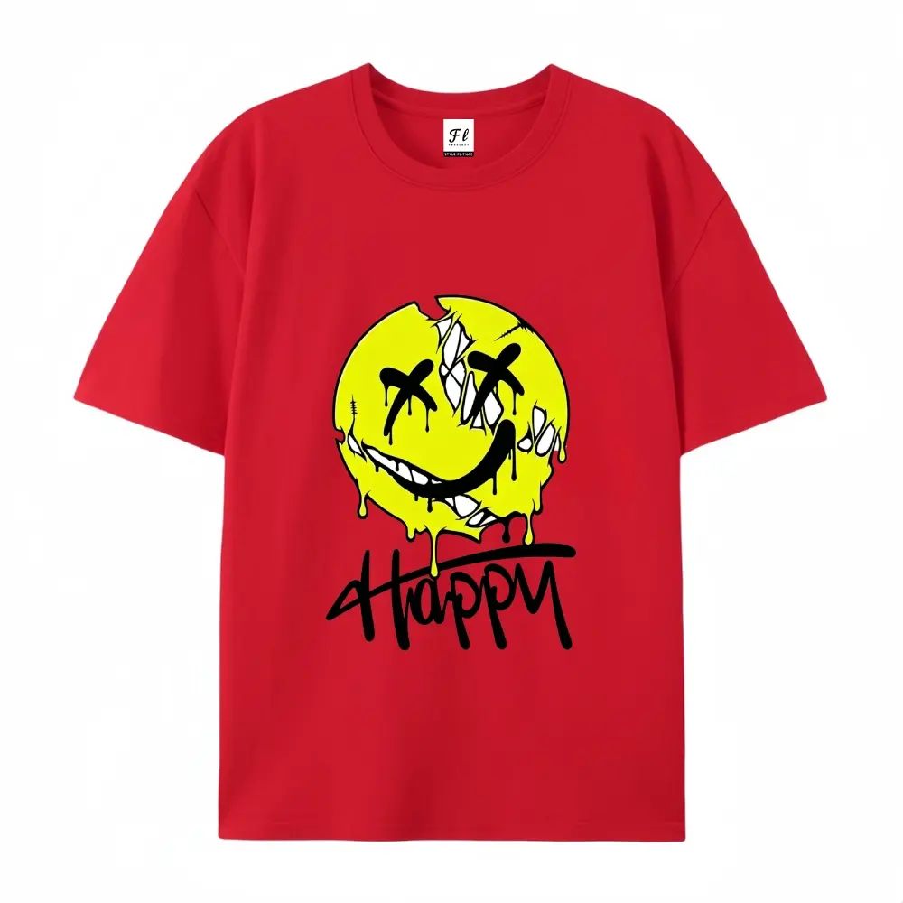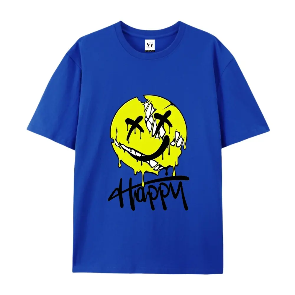 OveHappy Dripping Smiley Print T-Shirt Men Women rsized Casual Streetwear Short Sleeve Tops