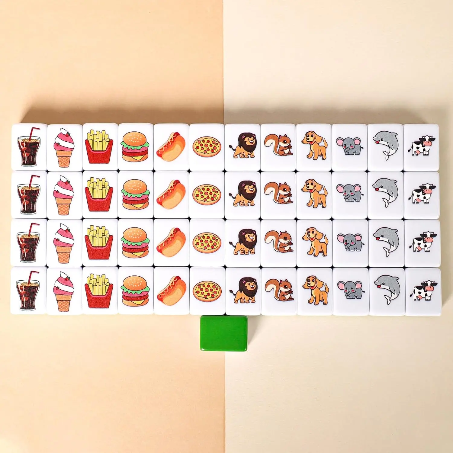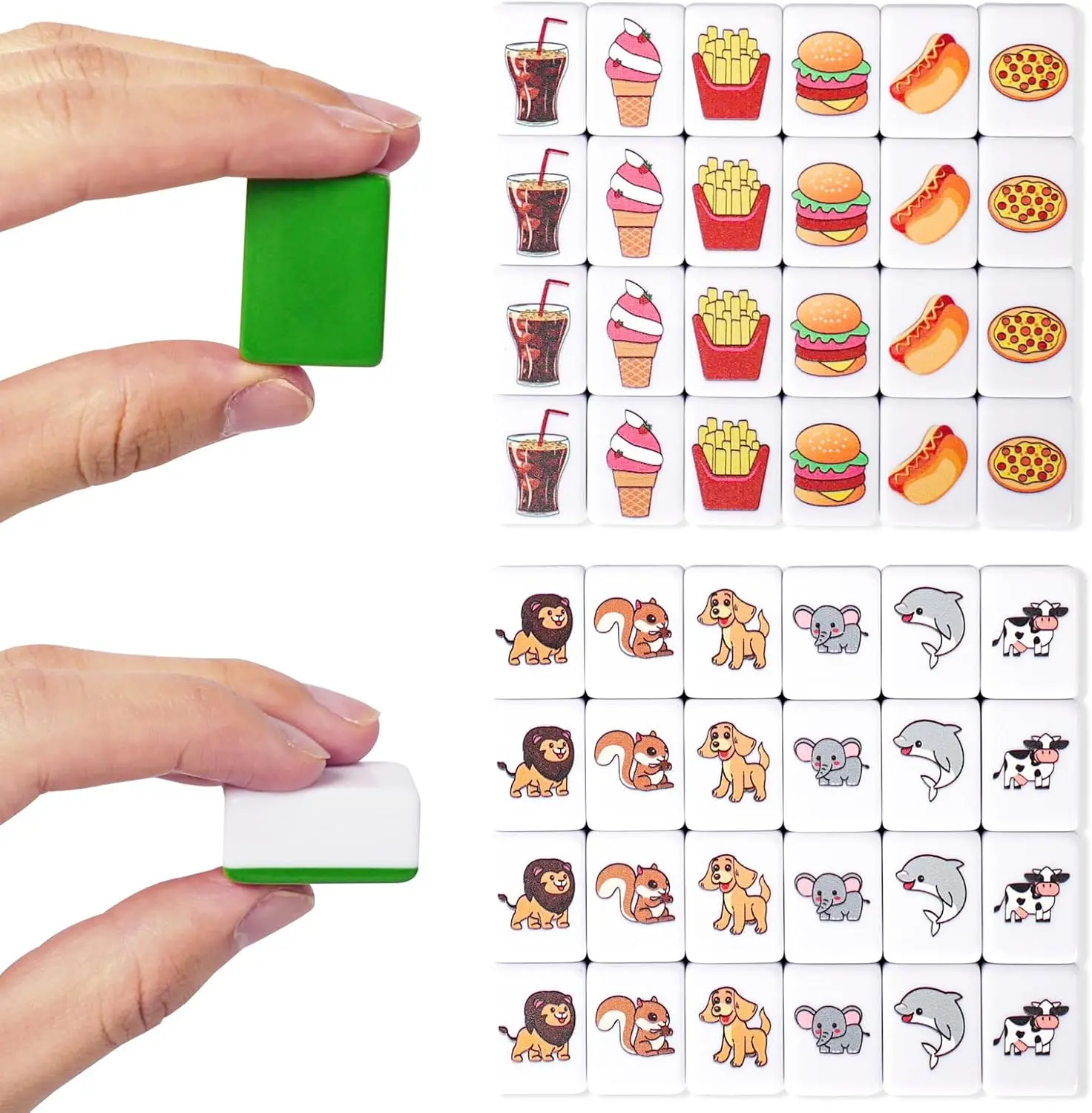 GRACIAS 2 Players Mahjong Block Set, Mahjong Tile Game with 50 Premium Green Tiles(30mm) Animal and Food Pattern, Portable Mahjongg Set with A Carry Bag