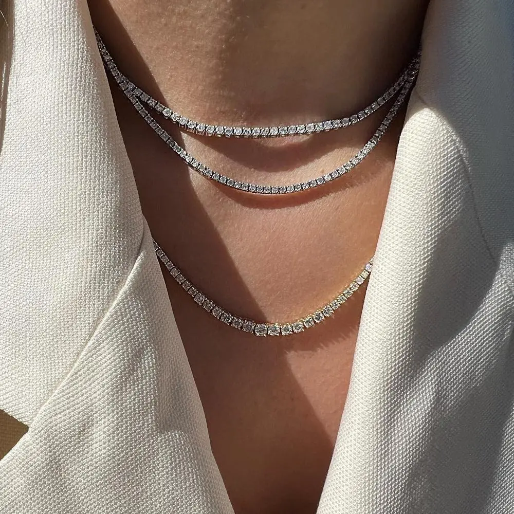 ESKEEM Moissanite Tennis Chain Necklace 925 Silver Iced Out VVS Pass Diamond Tester 2/3/4/5mm Tennis Chain Fine Jewelry