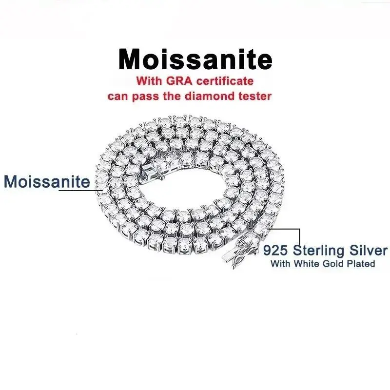 [Tennis Chain] Premium Unisex Moissanite Tennis Necklace for Men Original 925 Sterling Silver Hip Hop Tennis Bracelets for Women