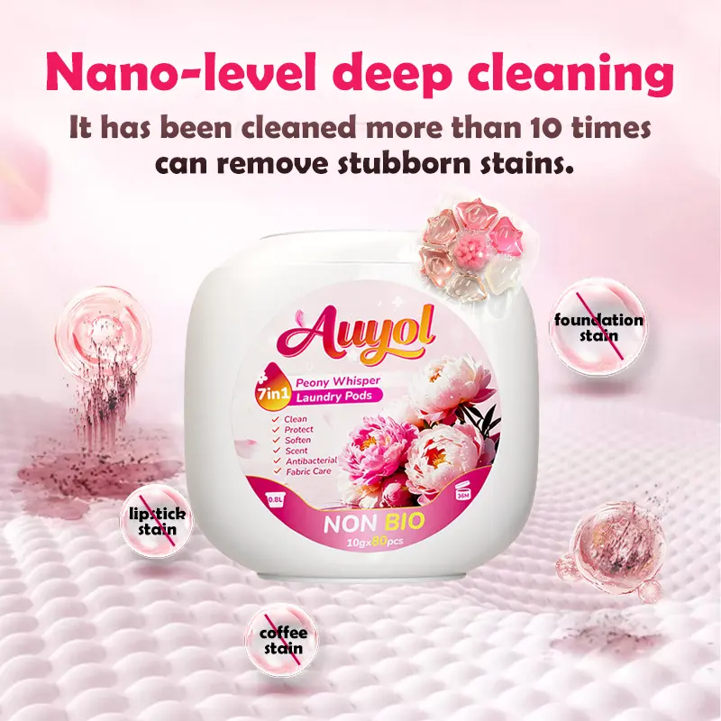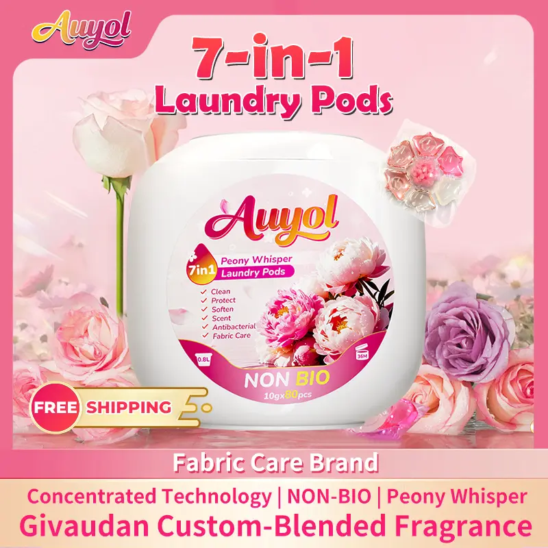 Auyol 4th Gen Laundry Capsules 7 in 1, Peony Whisper Fragrance, Quick-Dissolving Formula, Non-Bio, Powerful Clean & All-Day Freshness