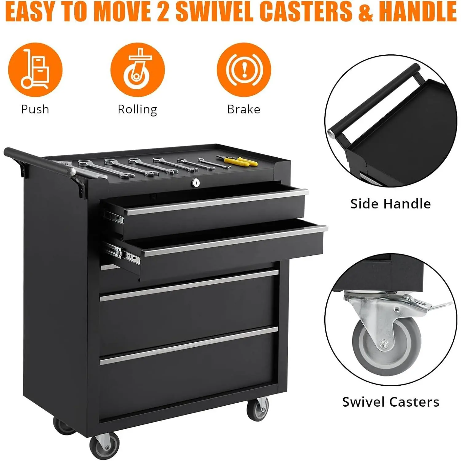 5-Drawer Rolling Tool Box, Tool Chest with Wheels, Tool Cart with Protective Liner&Sliding Drawers&Side Handle, Lockable Tool Storage Cabinet for Garage, Warehouse, Workshop, Repair Shop5-Drawer Rolling Tool Box, Tool Chest with Wheels, Tool Cart with Protective Liner&Sliding Drawers&Side Handle, Lockable Tool Storage Cabinet for Garage, Warehouse, Workshop, Repair Shop