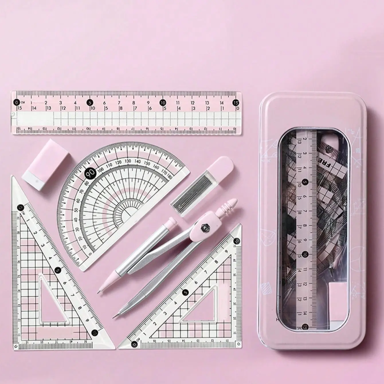 Ruler and Compass Set with Measuring Tool, Office, Teaching, Student Gift, Triangle Ruler Kit, Drawing Tools, Measurement Instruments