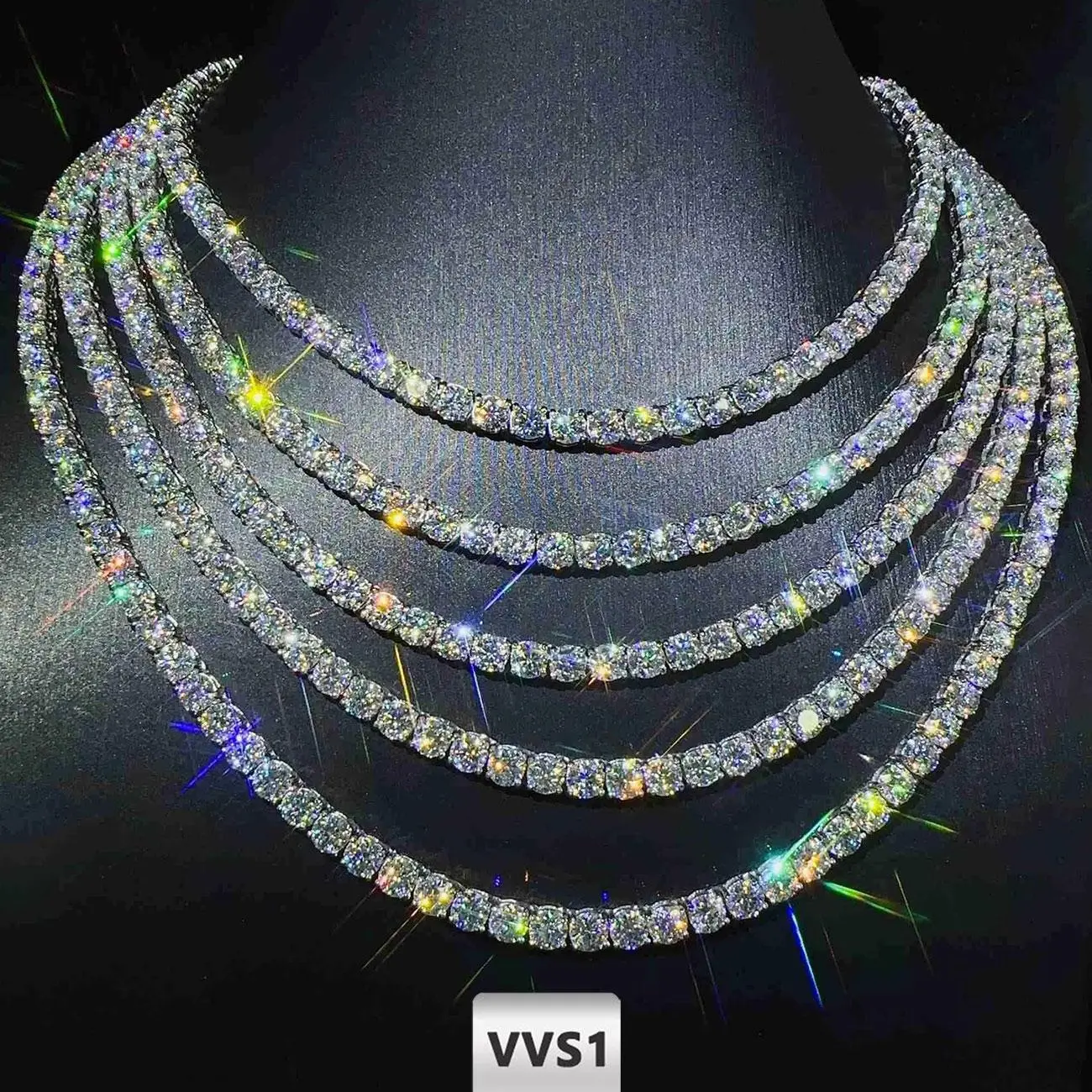 [Tennis Chain] Premium Unisex Moissanite Tennis Necklace for Men Original 925 Sterling Silver Hip Hop Tennis Bracelets for Women