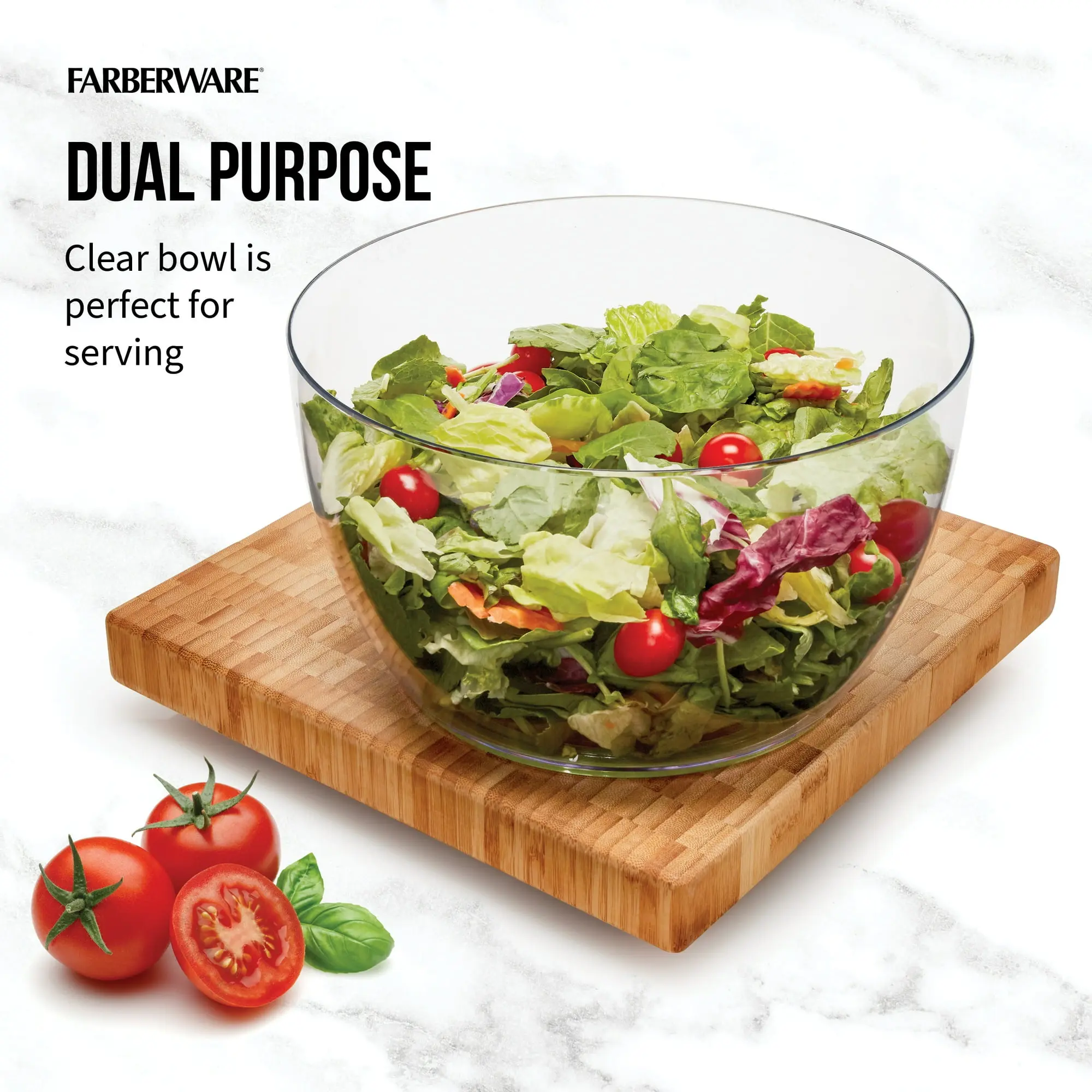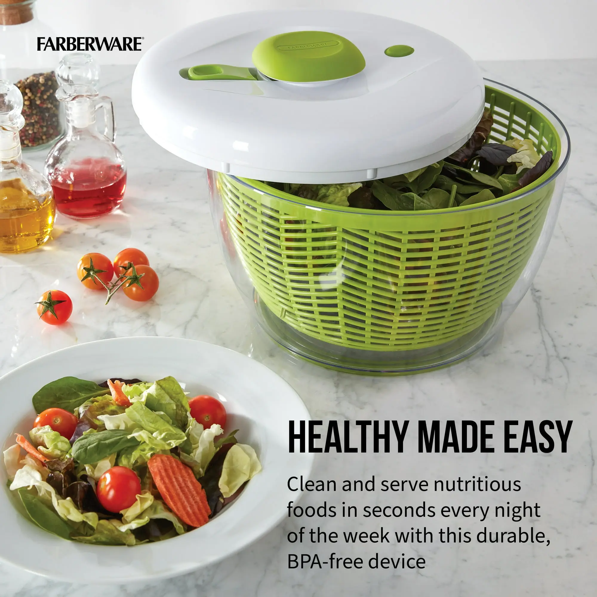 Tired of soggy salads? The Farberware Professional Salad Spinner is the fastest and easiest way to wash and dry your greens. With its high-capacity 6.6-quart bowl and effortless pump mechanism, you can prep healthy meals for the whole family in a flash.