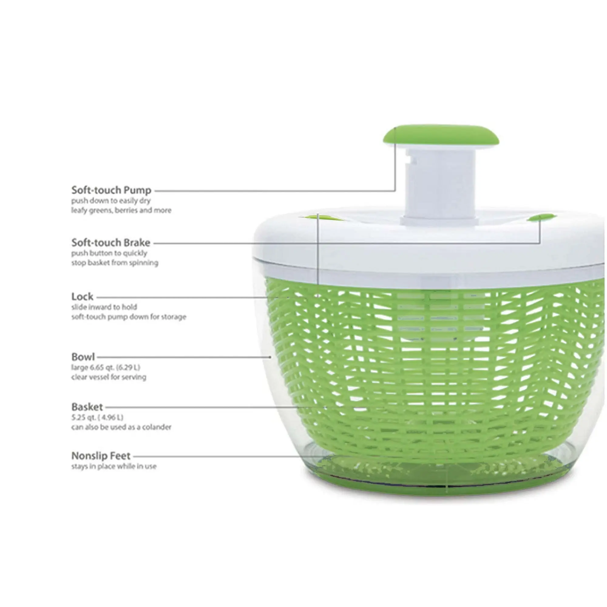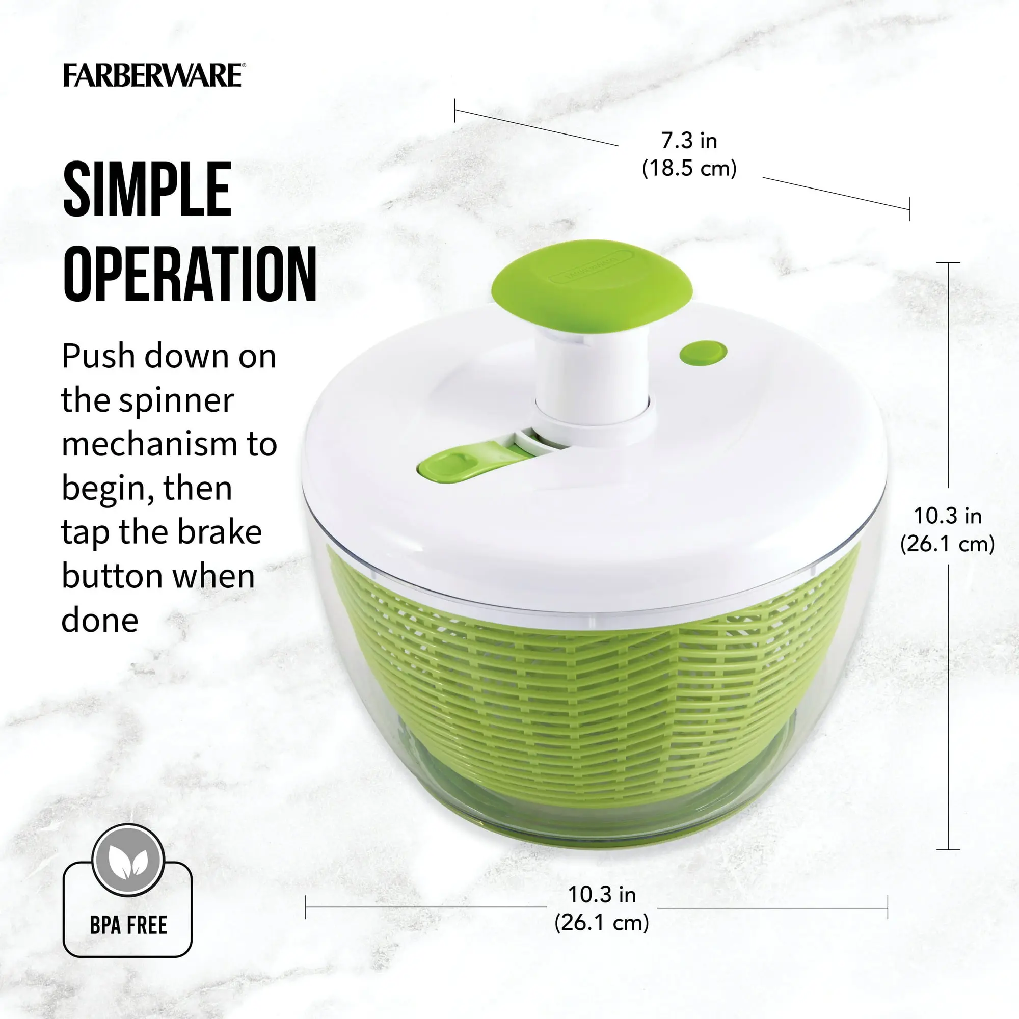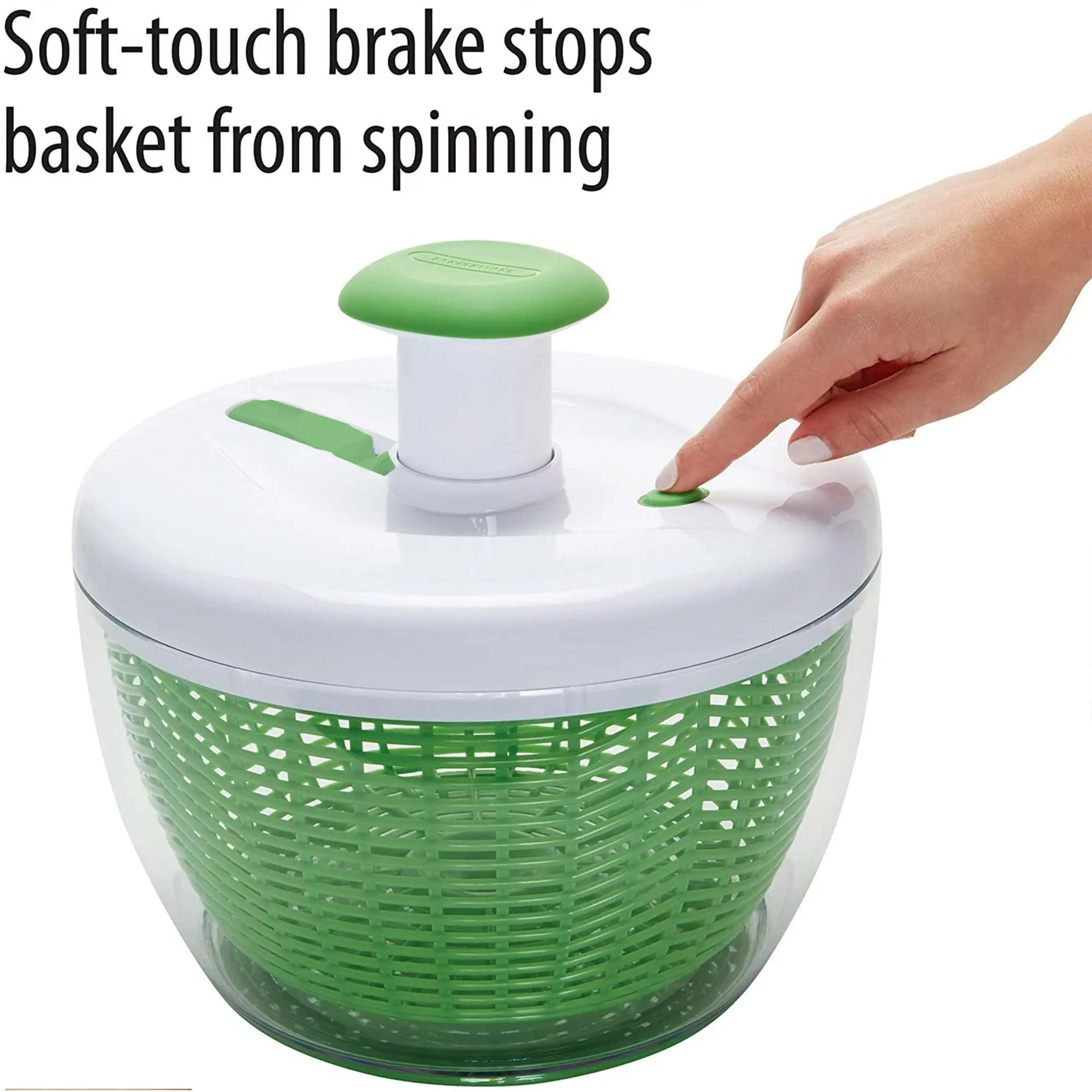 Built-in Brake Button: Stops the spinning immediately with a quick press of the brake button, preventing your greens from getting bruised.
