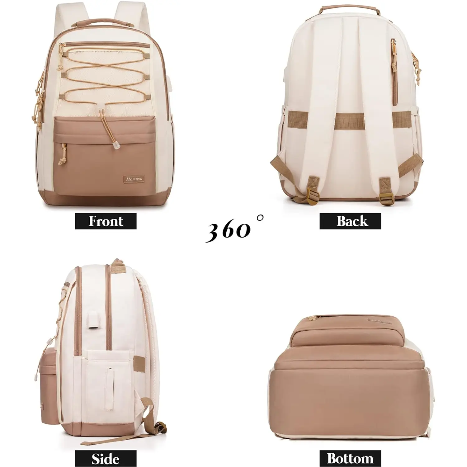 Momuvo 15 Inch Color Block Laptop Backpack for Women & Teens, Large Capacity Backpack with Bungee Cord & Multi-compartments, Water Resistant School Backpack for College Students, Daily Commute, Travel & Office