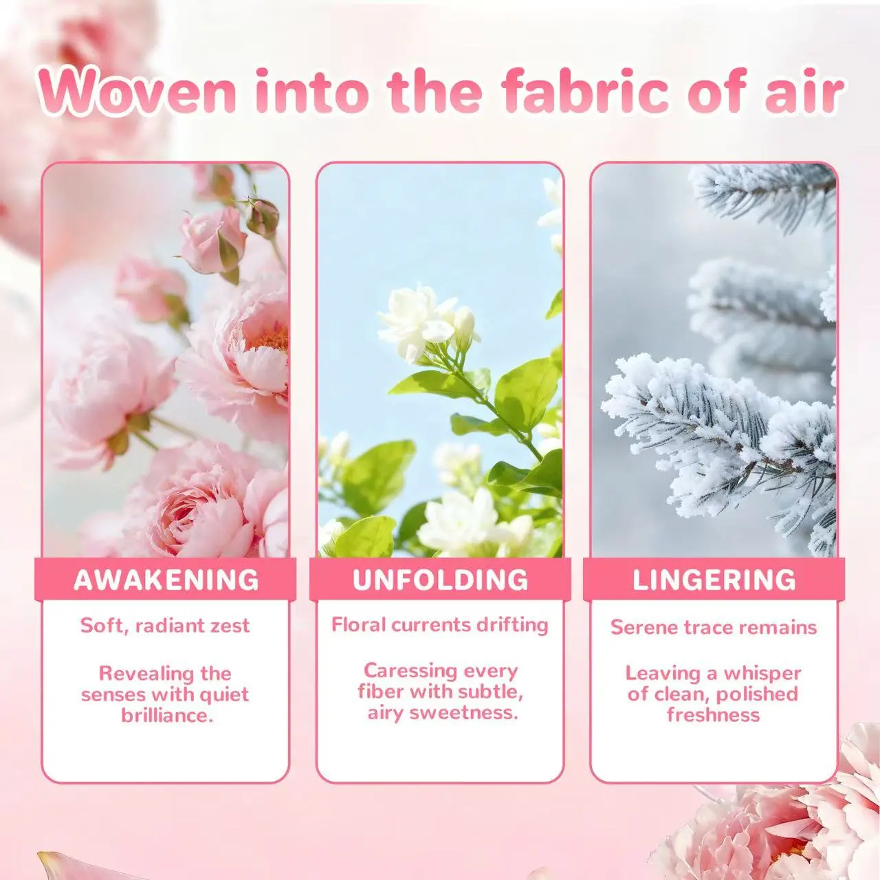 ·Peony Whisper fragrance: a sweet, long-lasting floral scent.