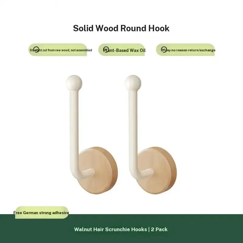 Walnut Wood Bathroom Hair Tie, No-Drill Wall-Mounted Storage Hook, Elastic Band Clip for Jewelry and Hair Accessories, Durable and Stylish Design