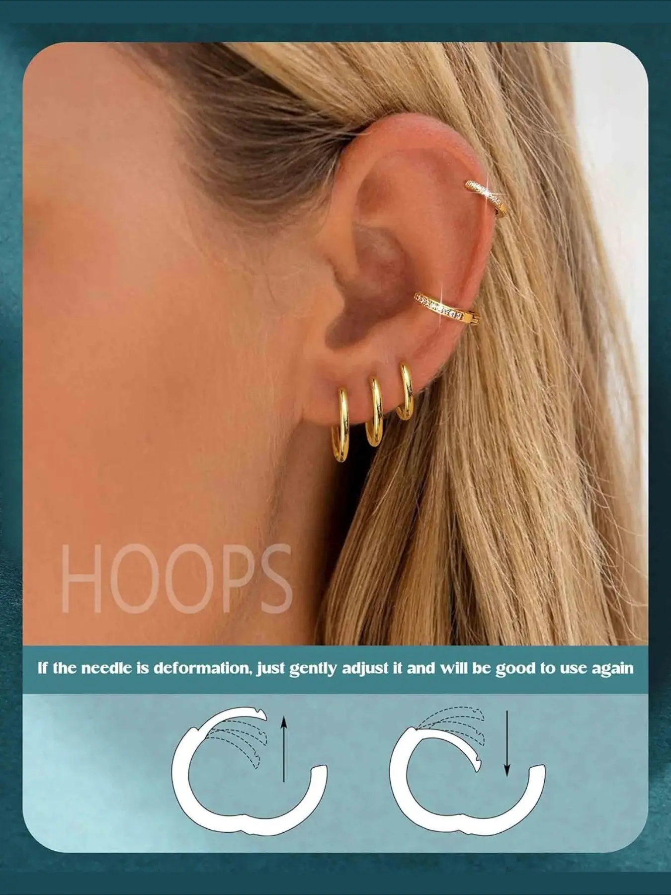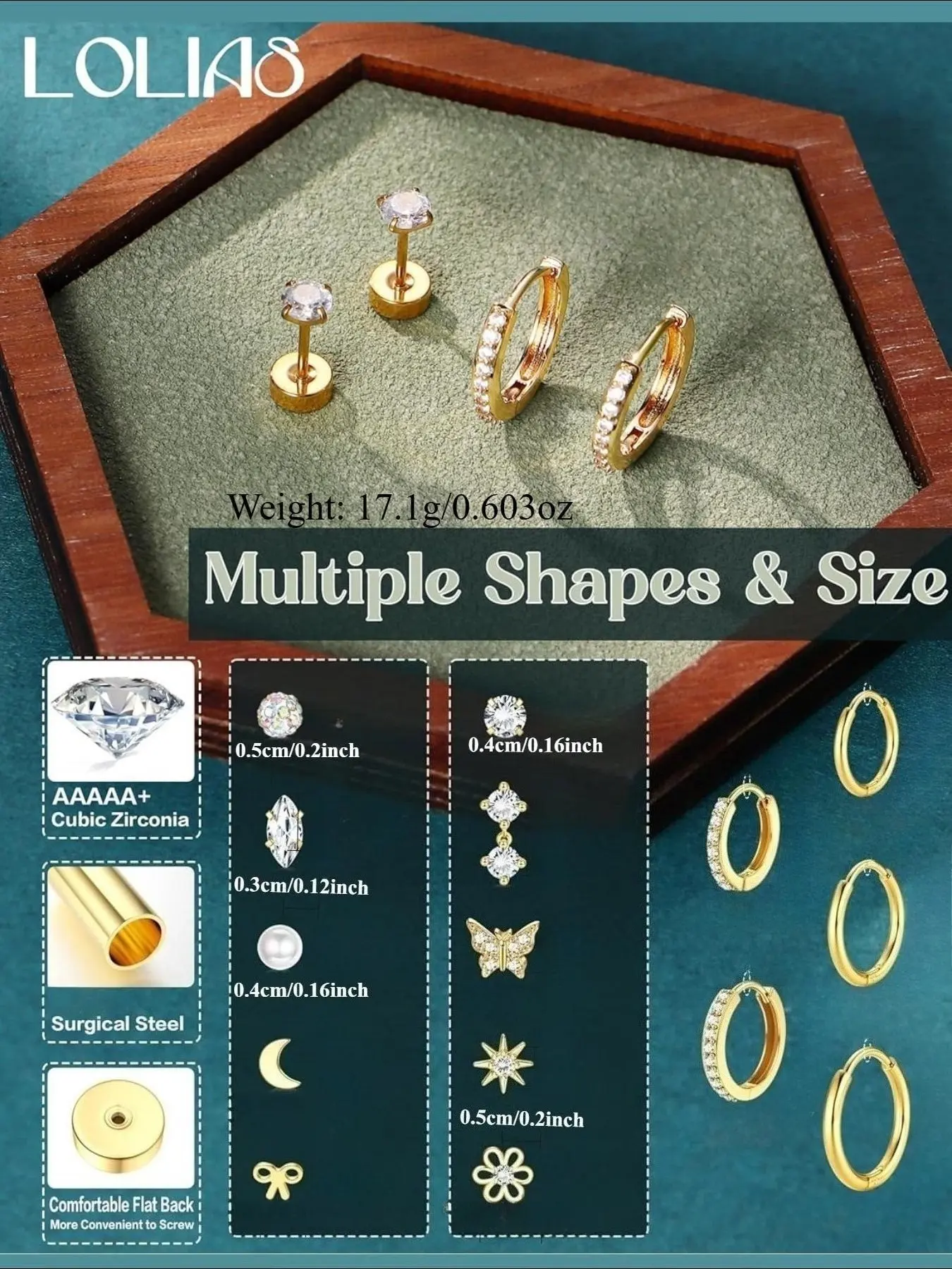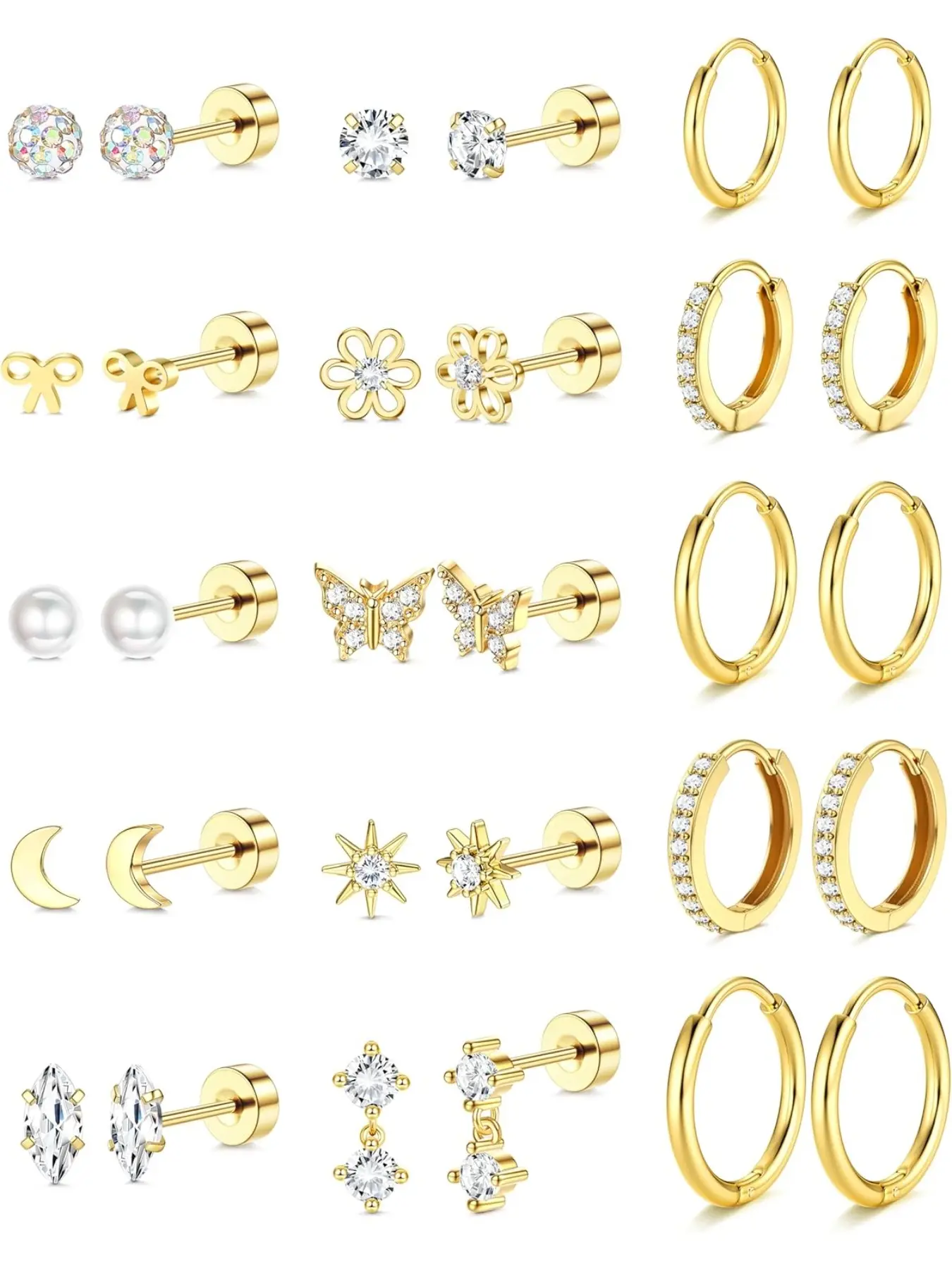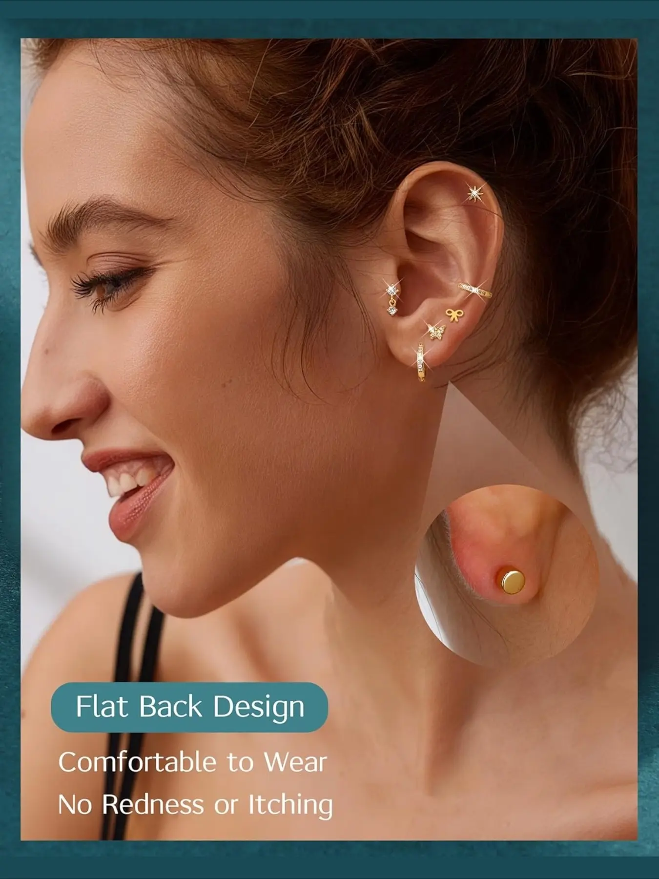 15 Pairs Flat Back Earrings, Hypoallergenic Stainless Steel Stud Hoop Earrings, Casual Jewelry for Women and Girls