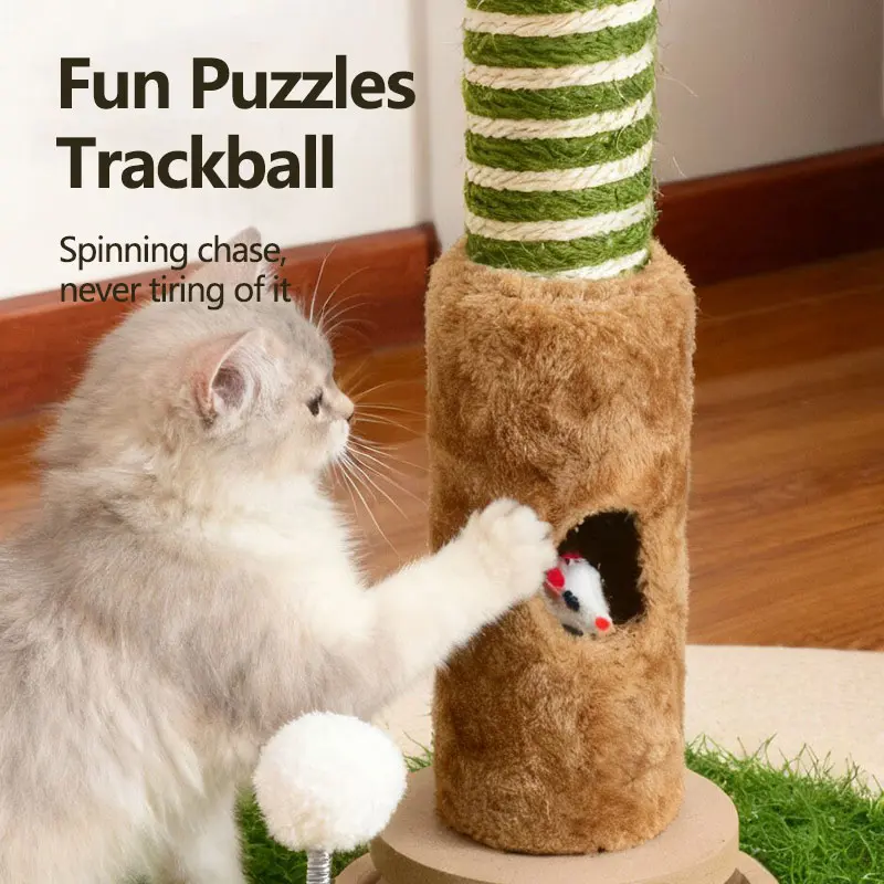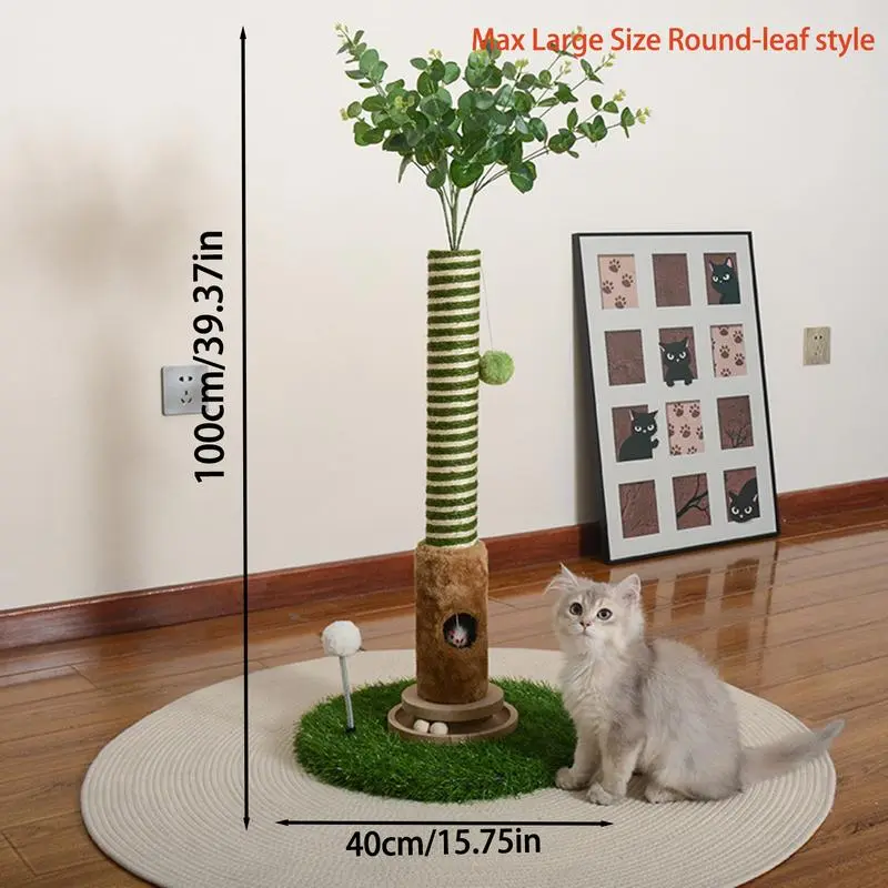 Cat Scratching Post with Artificial Plant - 4-in-1 Interactive Cat Tree Tower- Kitten Scratcher with Toy Balls & Dangling Ball - Indoor Cat Scratching Post with Ball - Sisal rope - post tower - modern pet furniture