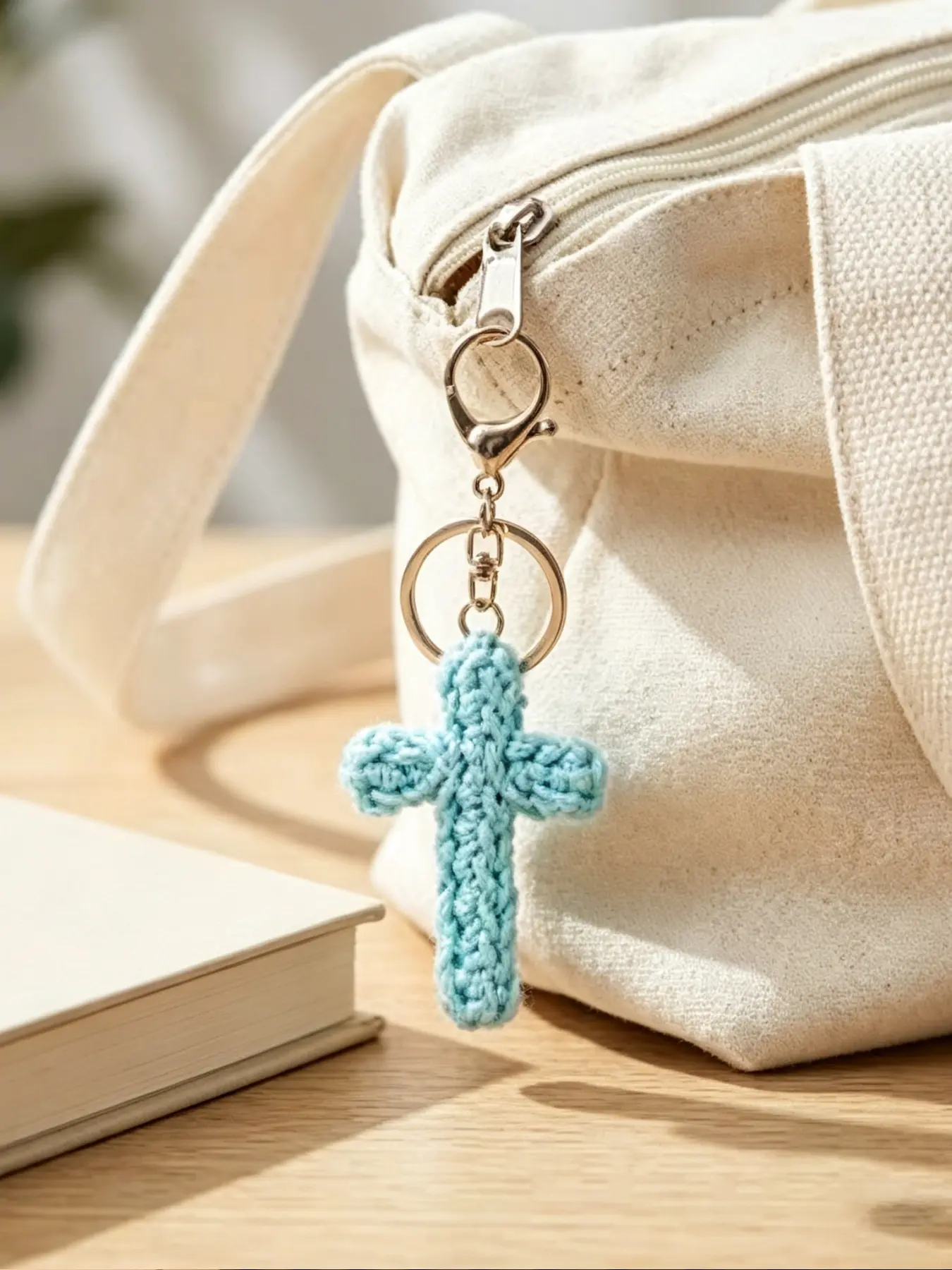 A handmade crocheted cross keychain charm, suitable for everyday wear, vacation dates, and other occasions, and also a delightful little gift that brings surprise.