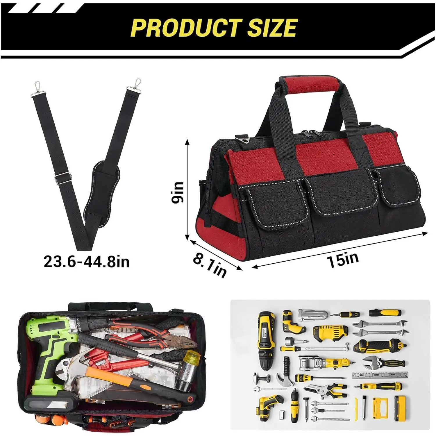 ·✔【Large Capacity Tool Organizer】Features 2 large pouches, a wrench roll, and 2 detachable pouches with D-rings. This tool organizer keeps wrenches, pliers, screwdrivers, and accessories neatly separated—no more digging through a cluttered bag.