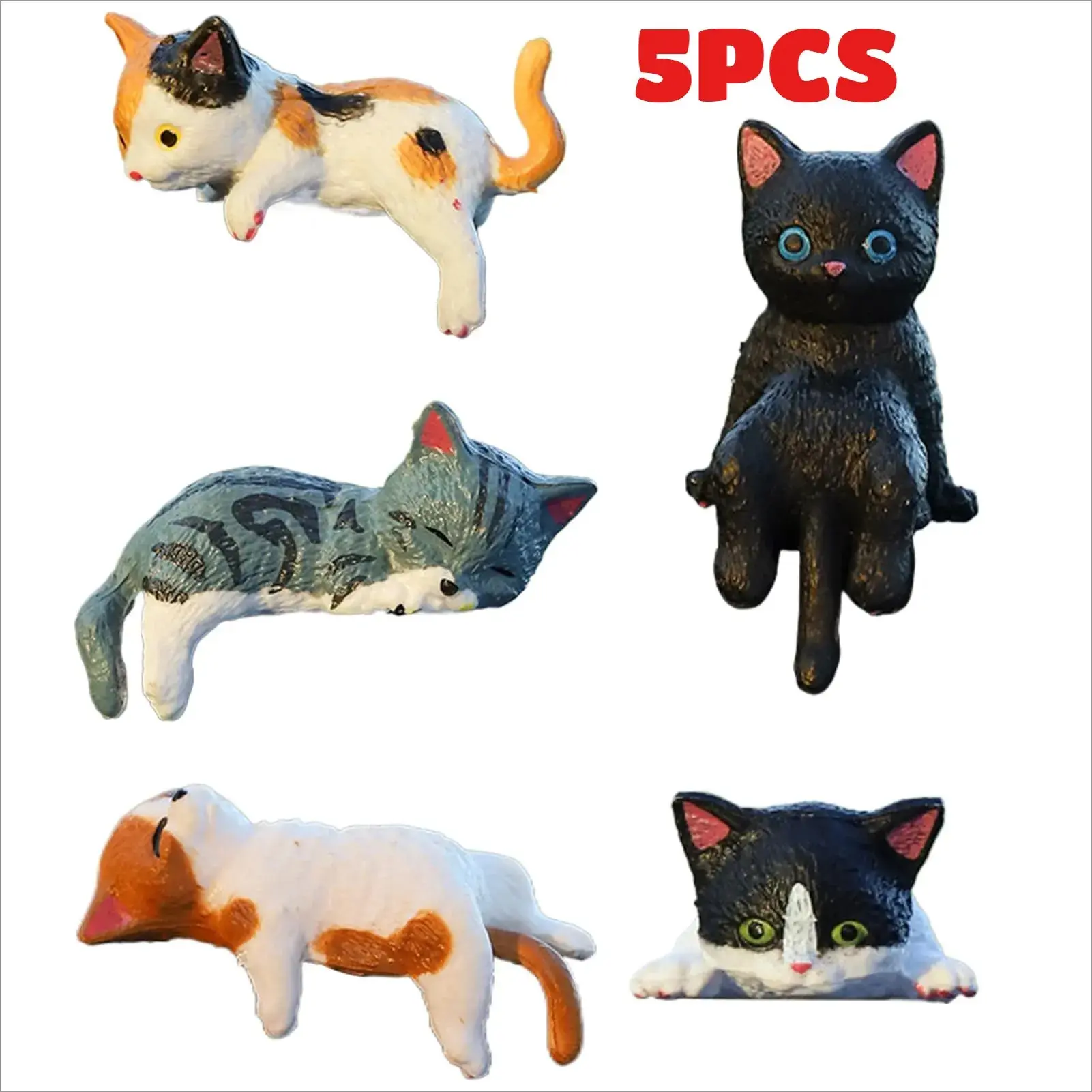 2026 Set of 5 Mini Cat Desk Figurines| Resin Multi Pose Kitty Ornaments| Cute Cartoon Style Desk Companions| Playful Desktop Decoration for Home Offices Cubicles