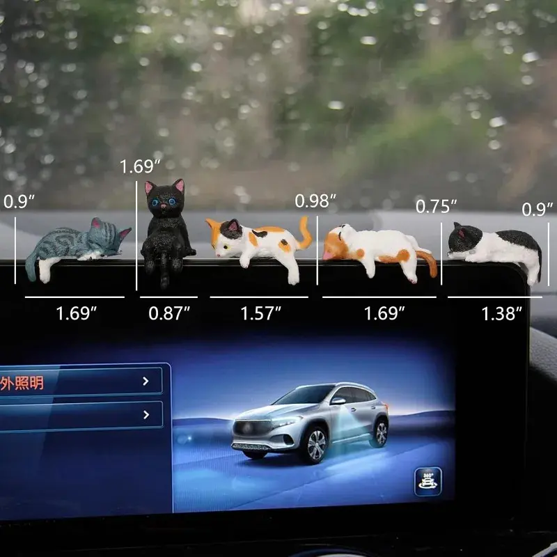 Adorable cat car accessories 5 pcs set perfect for car dashboard decor, rear view mirror ornaments, as well as home or office decoration.