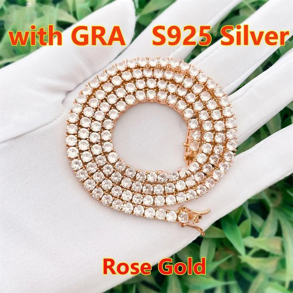 Fast Shipping Hip Hop Iced Out 2/3/4/5mm Moissanite Tennis Chain Men Women 925 Silver Moissanite Tennis Necklace GRA Certificate
