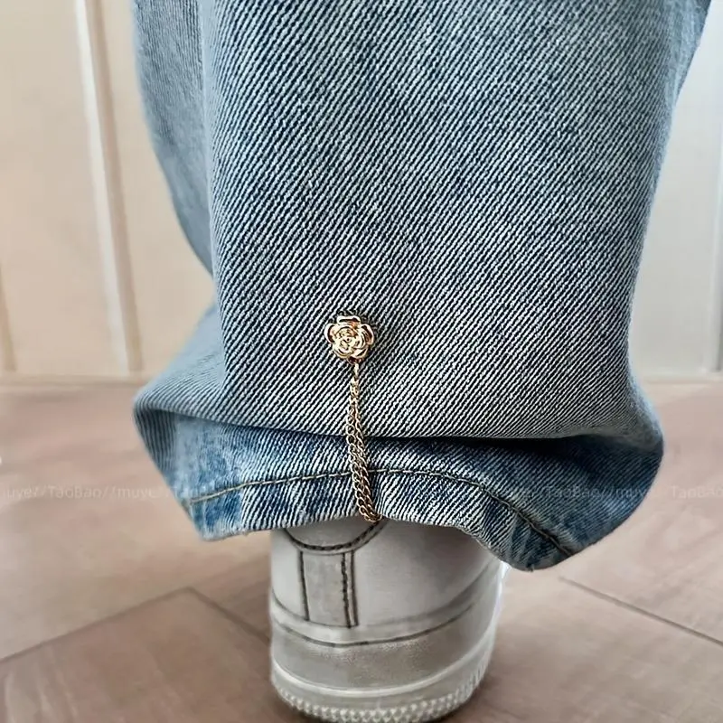 5. 6Pcs Camellia T-Shirt Button Clips, Adjustable Clothing Hem Fixing & Cuff Adjusters, Elegant Decorative Metal Fasteners for Shirt Sleeve & Pants Hem Shortening
