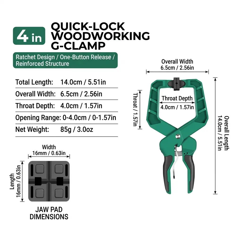 4" QUICK-LOCK WOODWORKING G-CLAMP