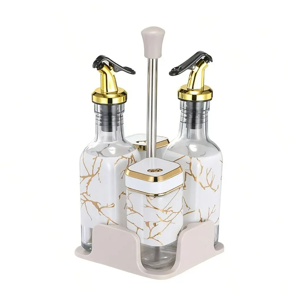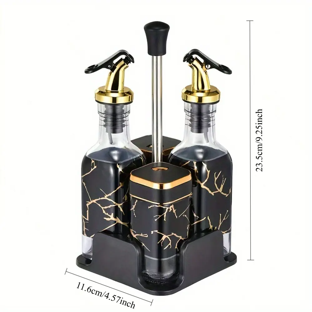Salt Bottle Vinegar Oil Set, Rotating Lid Design with Stainless Steel Spice Jar, Perfect for Cooking and Grilling, Leak Proof Dispenser
