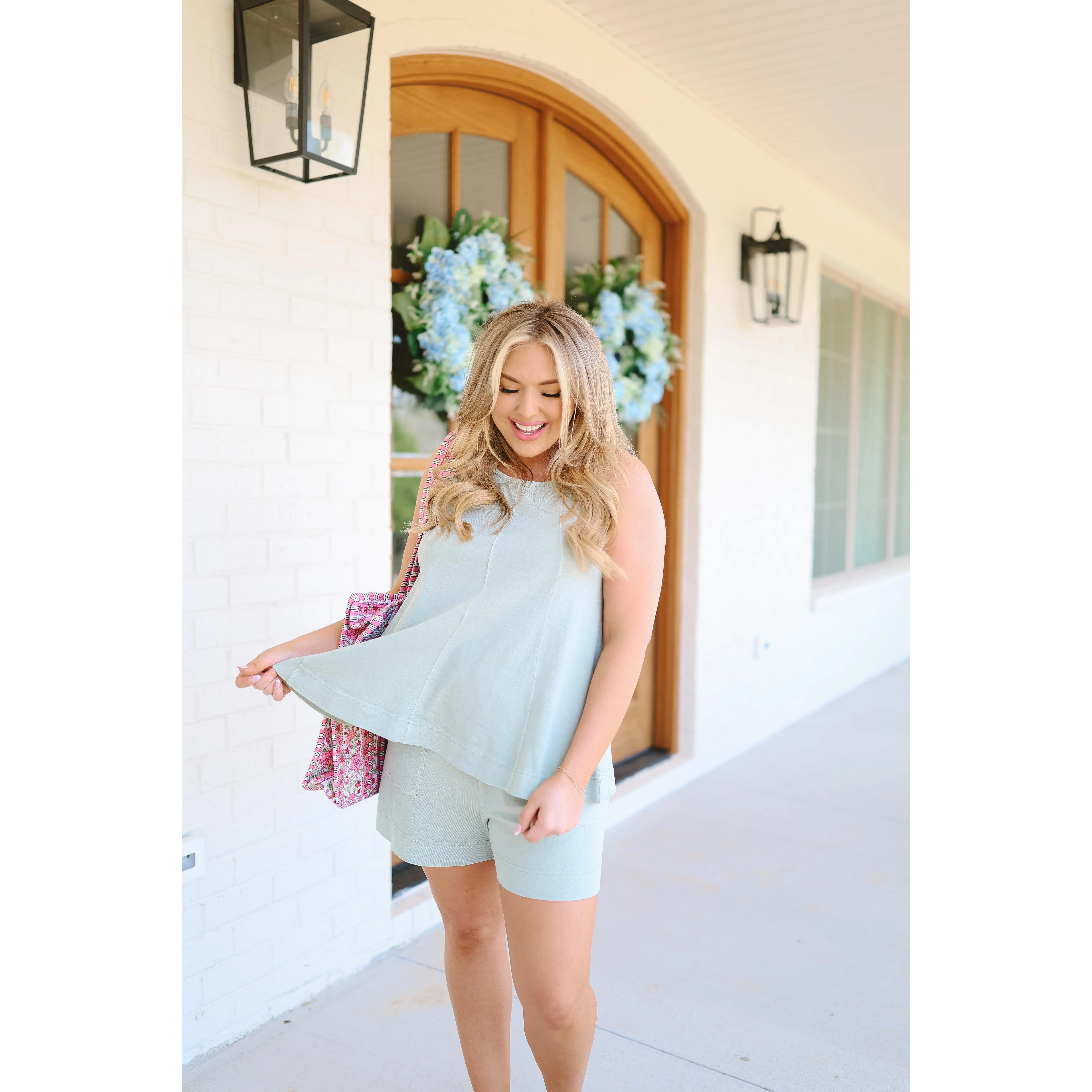 The Marissa Knit Tank & Short Set is the perfect blend of comfort and effortless style. Designed in a sage green knit fabric, this matching set features a relaxed sleeveless tank and coordinating shorts for an easy, put-together look that’s perfect for everyday wear, travel days, or laid-back weekends.