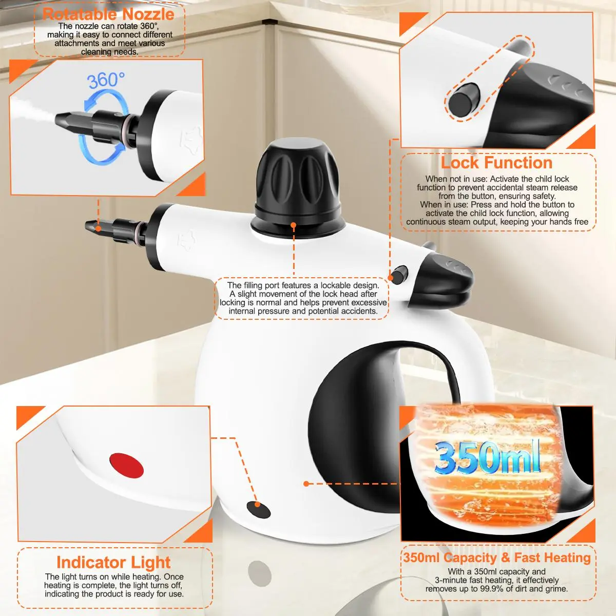 ·Pressurized Handheld Design: This steam cleaner offers a pressurized handheld design for efficient cleaning.
