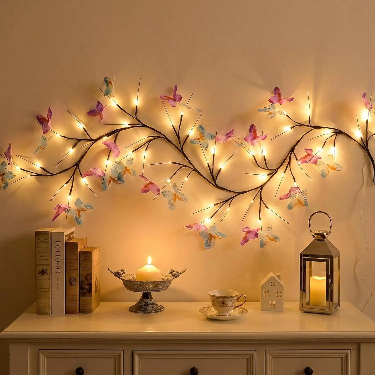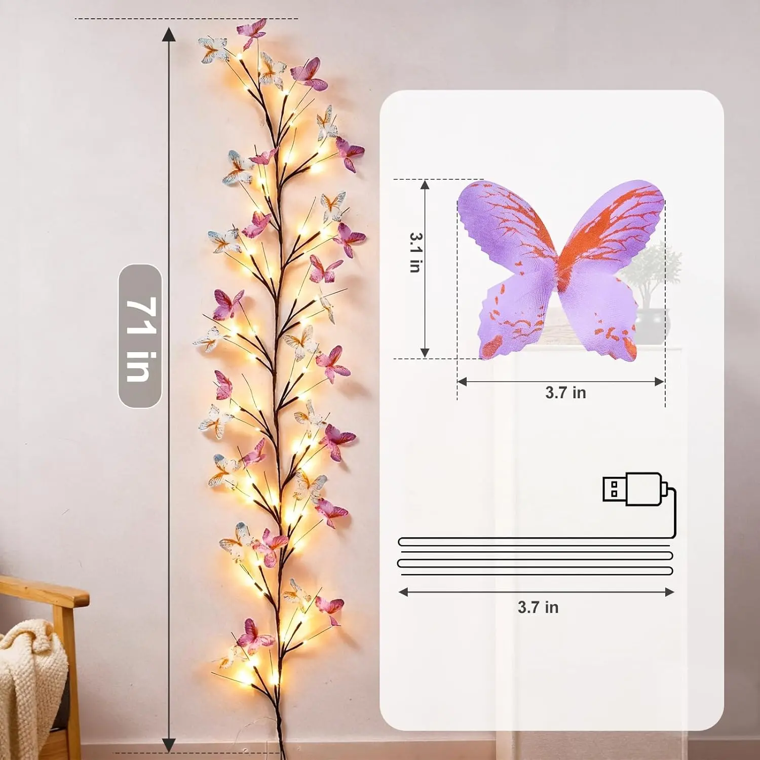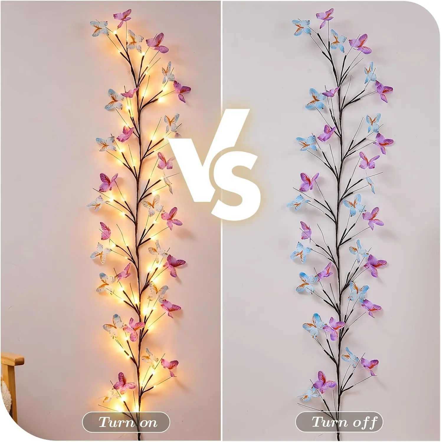 【Exquisite Appearance】: This lifelike butterfly garland functions as a stunning centerpiece. The vibrant butterfly accents combined with soft lighting create a vivid, enchanting atmosphere for any room.