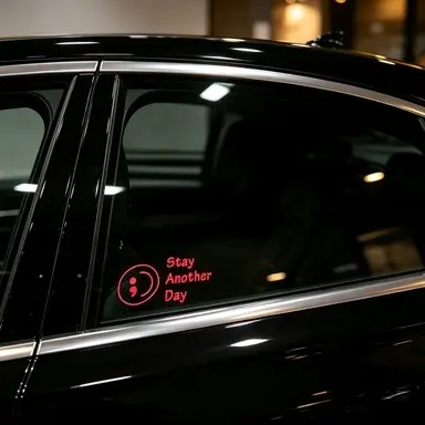 • Mental Health Awareness: This car sticker, themed "Sadness, Hang in There for One More Day," aims to raise awareness of mental health. It subtly reminds drivers to pay attention to and support their mental well-being. Perfect for spreading mental health awareness on the road.