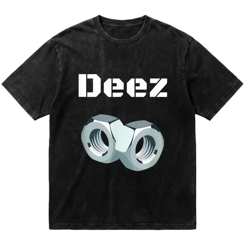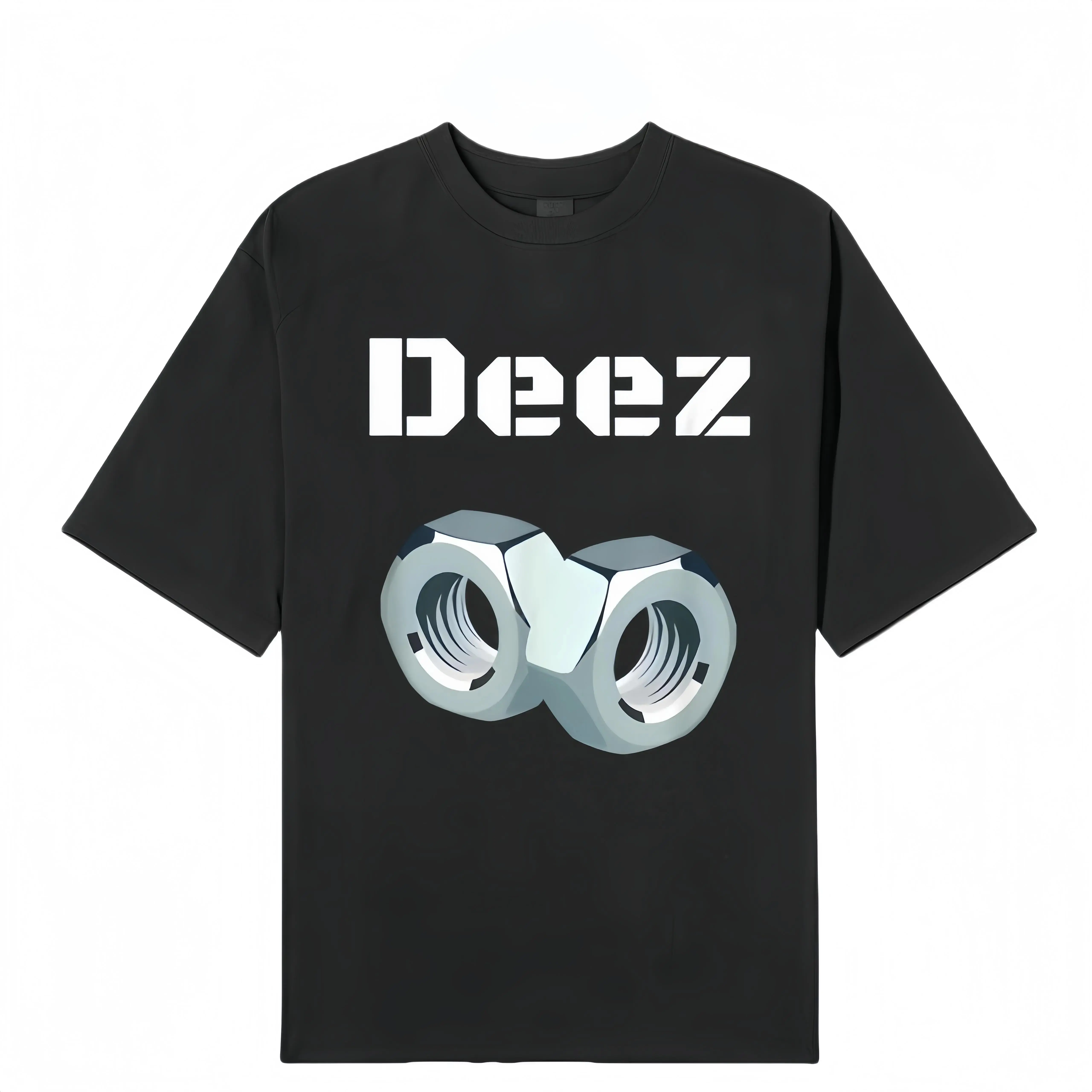 Black trendy T-shirt Deez with three-dimensional nut print, functional loose short-sleeved unisex style deez nut