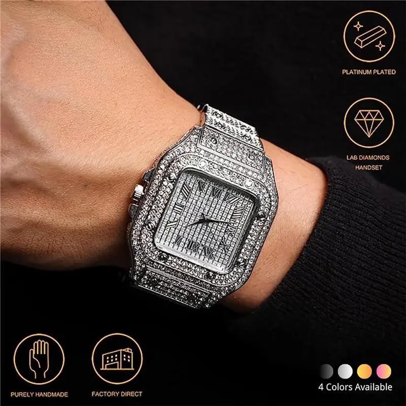 (New)Diamond Mens Watch, Luxury Crystal Diamond Watches Big Face Quartz Watch, Men’s Diamond Watch Iced Out Watchs, Stainless Steel Watch, Hip Hop Watches(Gift)11