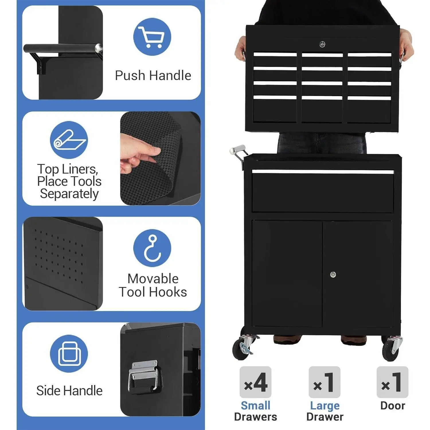 ·【Easy assembly, versatile for multiple spaces】Simple setup with clear instructions gets you organizing fast. Perfect as a rolling tool box for garage storage, workshop benches, mechanics and repair shops—fits common tool organizers and complements other tool chests & cabinets.