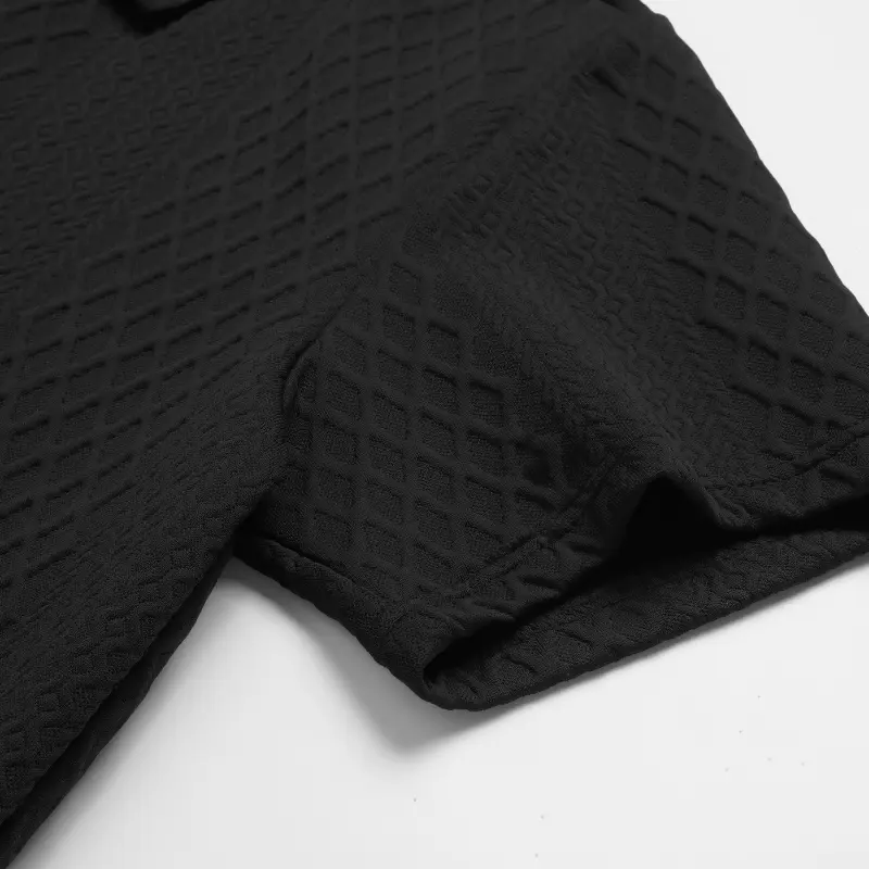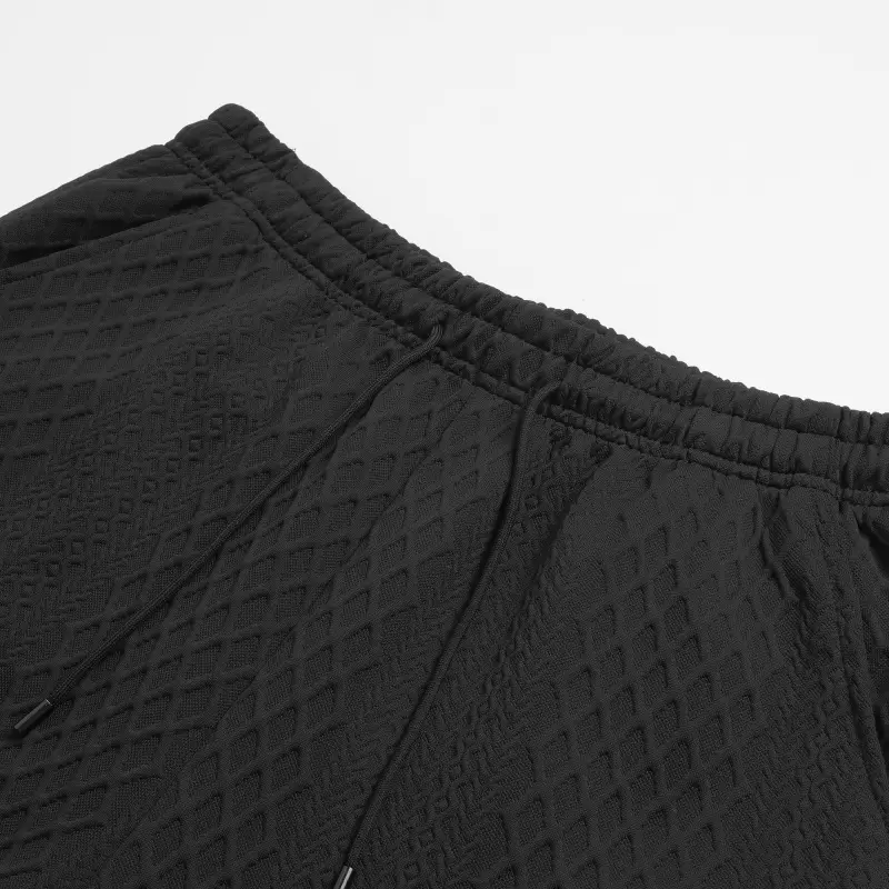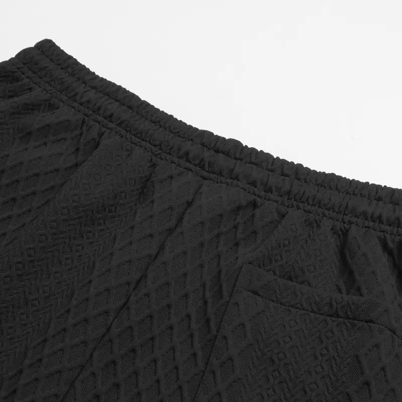 Summer bestsellers 2-piece set for men: trendy jacquard solid-color short-sleeve outfit featuring a short-sleeve top and shorts. Breathable summer casual wear with comfortable fabric, minimalist design, soft texture—ideal for young people going out on dat