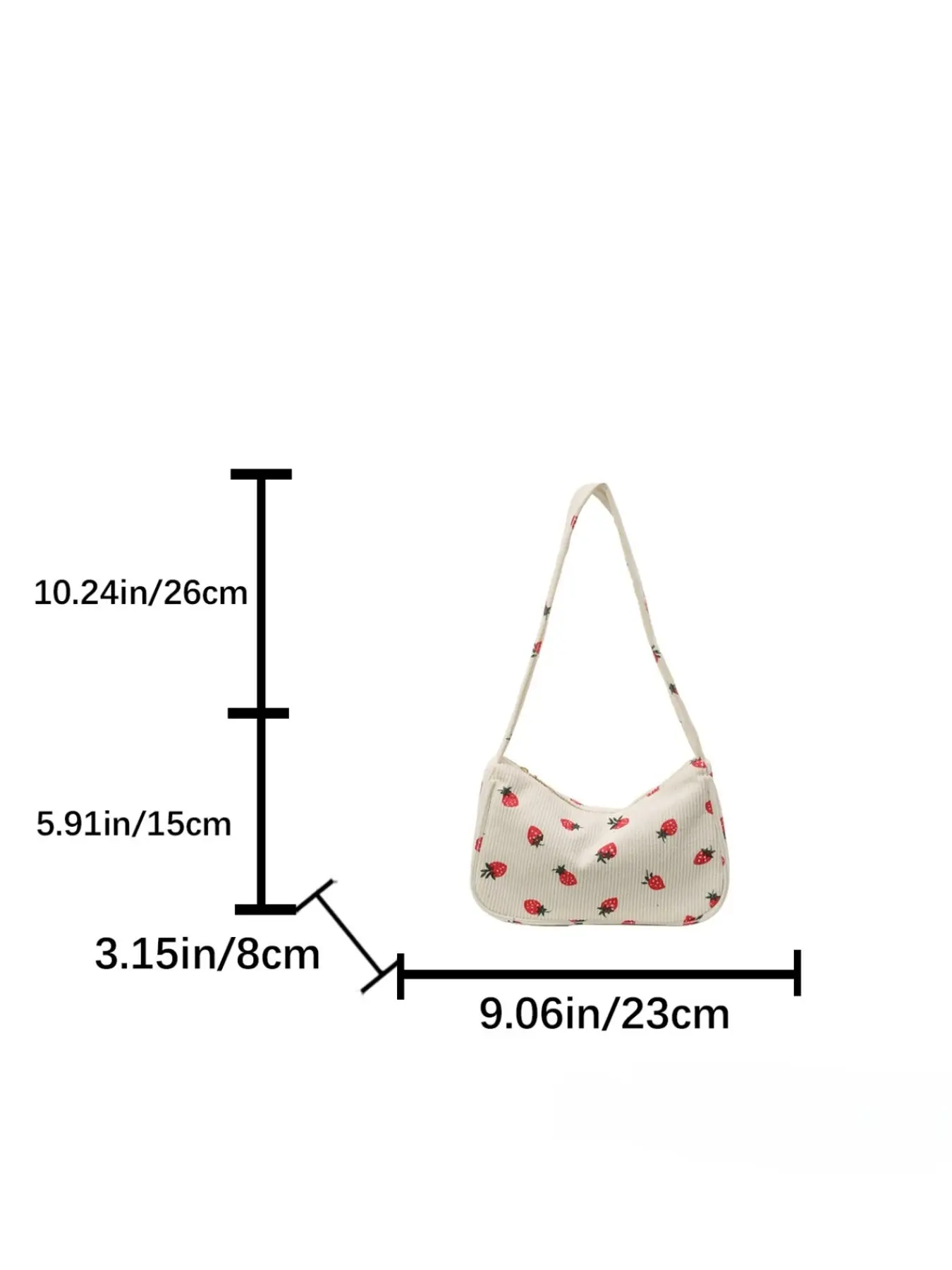 Fashionable Fruit Print Shoulder Bag, Large Capacity, Cute and Fresh Design, Versatile Plain Color Backpack, Perfect for Daily Use